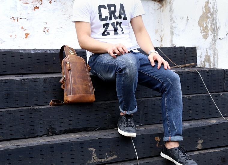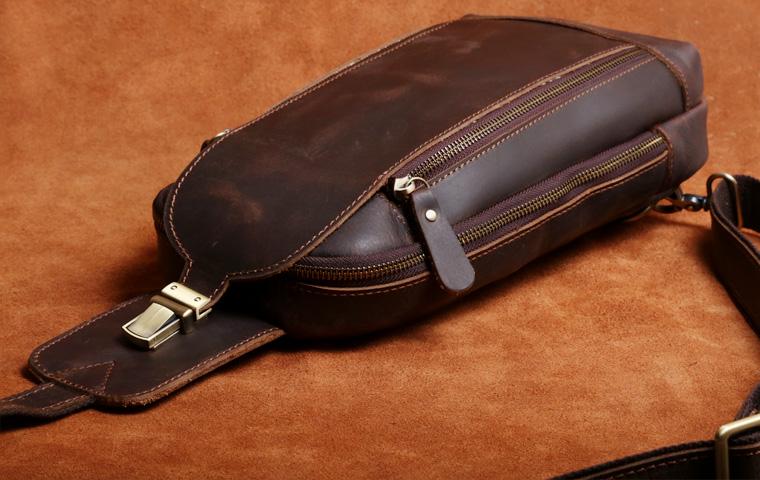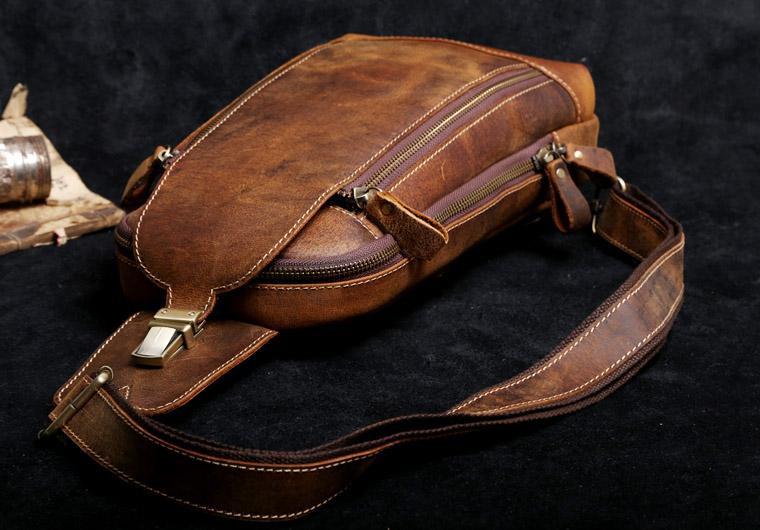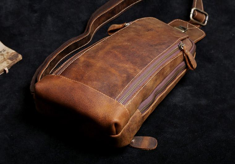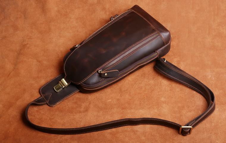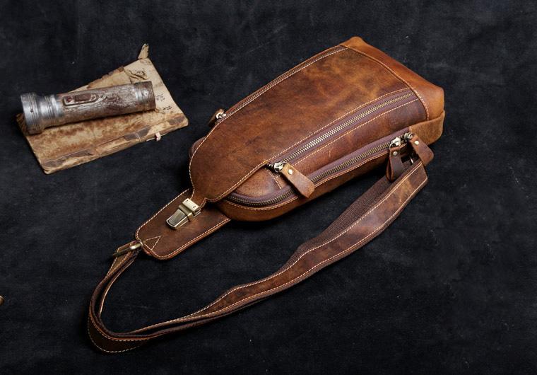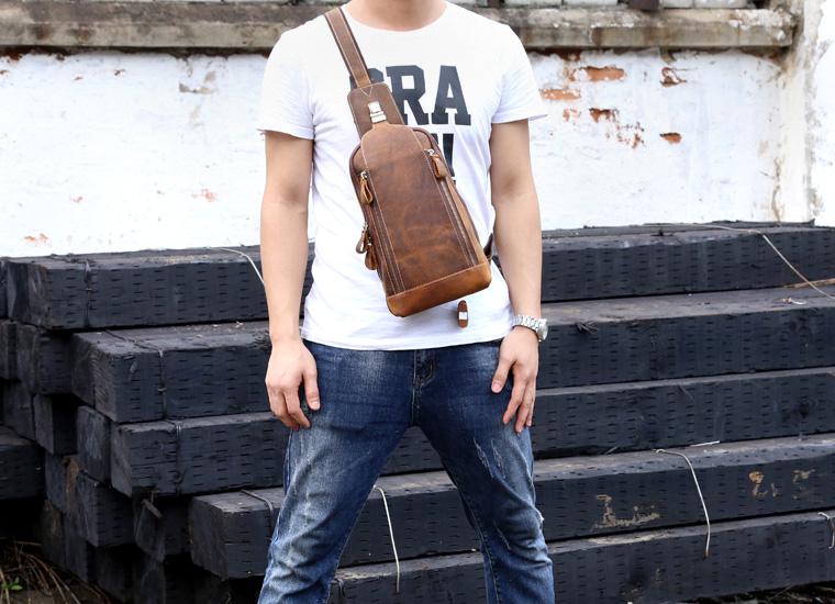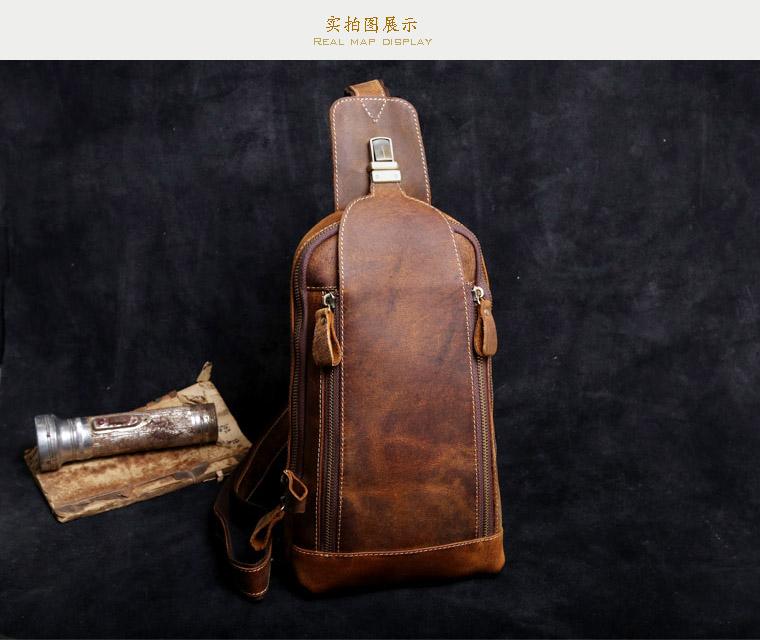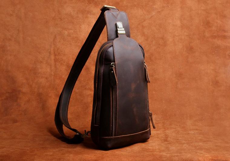 Style: Handmade Leather Mens Cool Chest Bag Sling Bag Crossbody Bag Travel Bag Hiking Bag for men