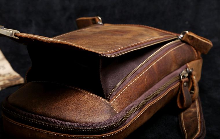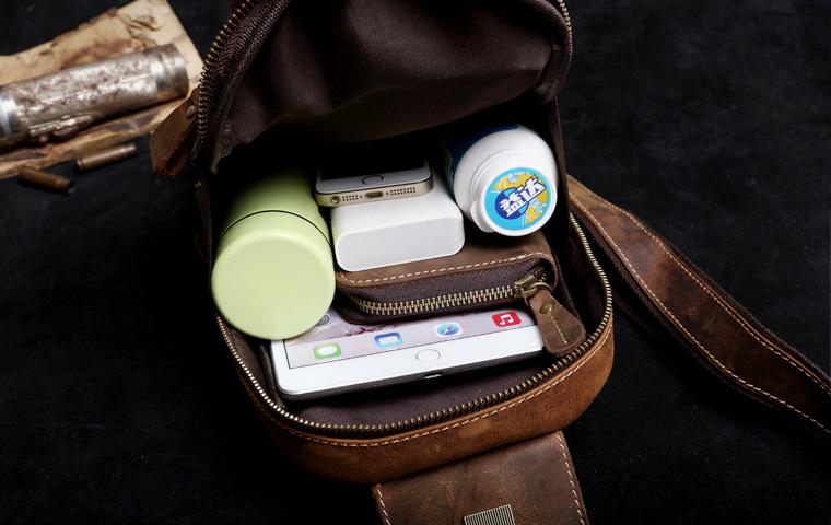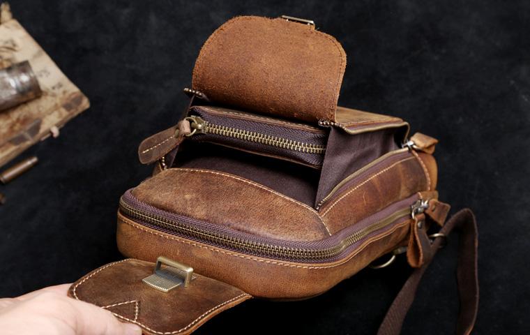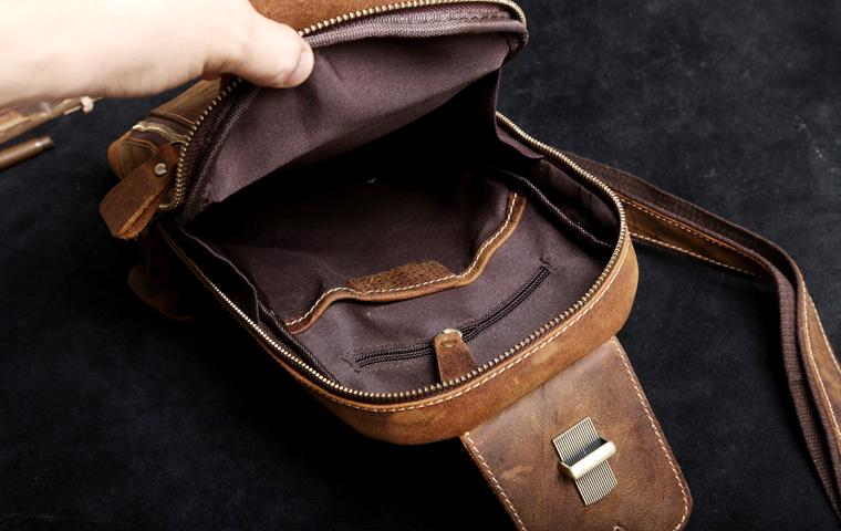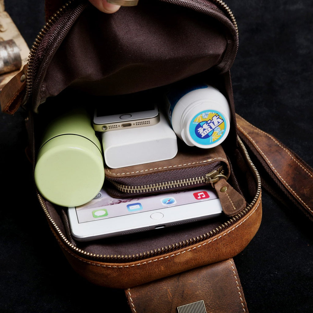 Handmade Leather Mens Cool Chest Bag Sling Bag Crossbody Bag Travel Bag Hiking Bag for men