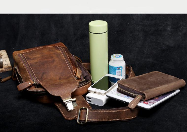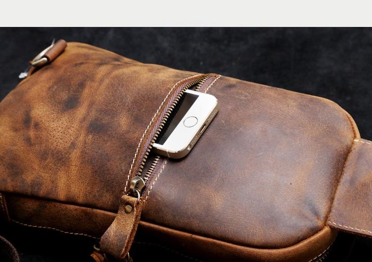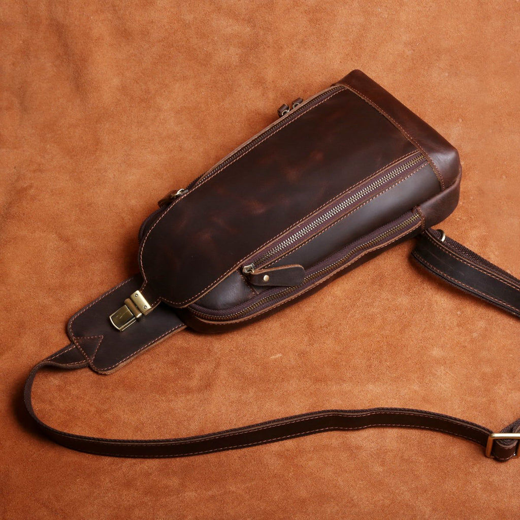 Design: Handmade Leather Mens Cool Chest Bag Sling Bag Crossbody Bag Travel Bag Hiking Bag for men