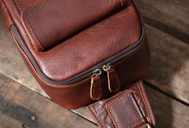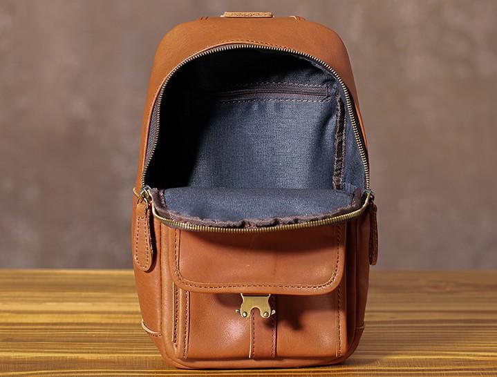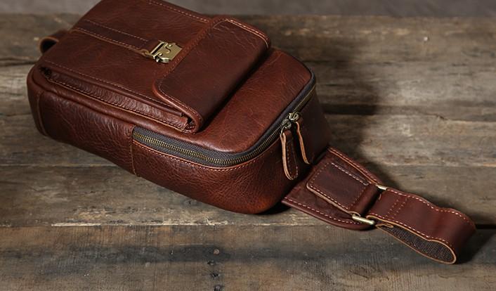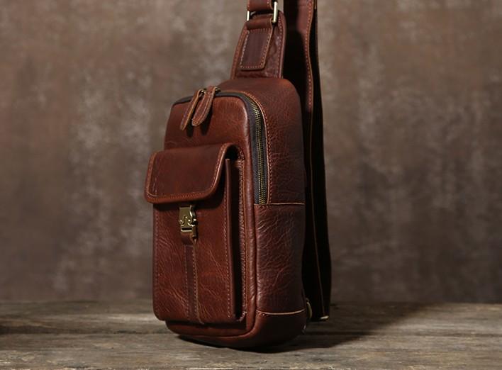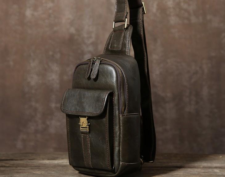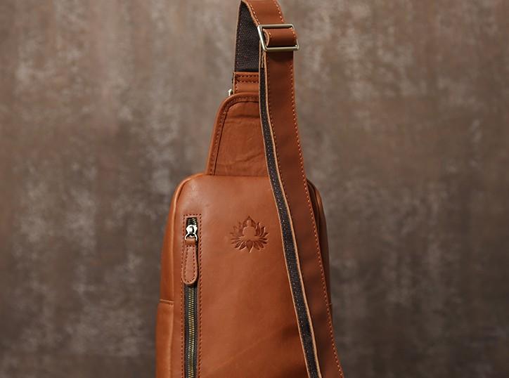 Design: Handmade Leather Mens Cool Chest Bag Sling Bag Crossbody Bag Travel Bag Hiking Bag for men