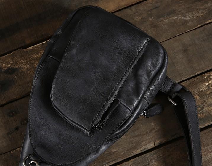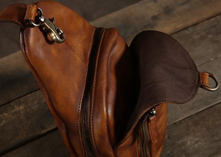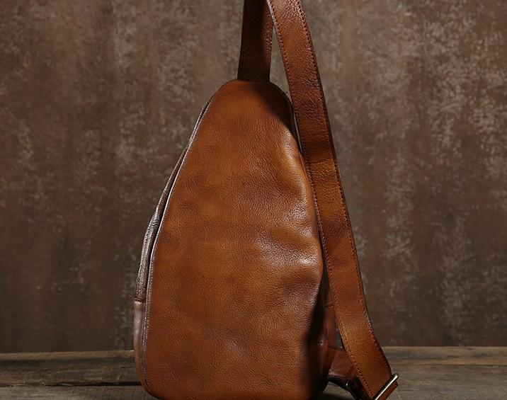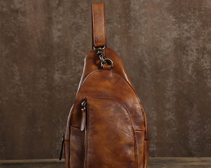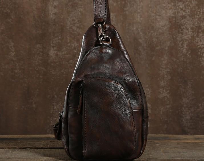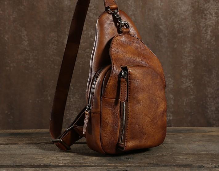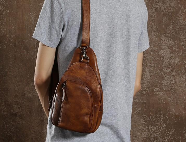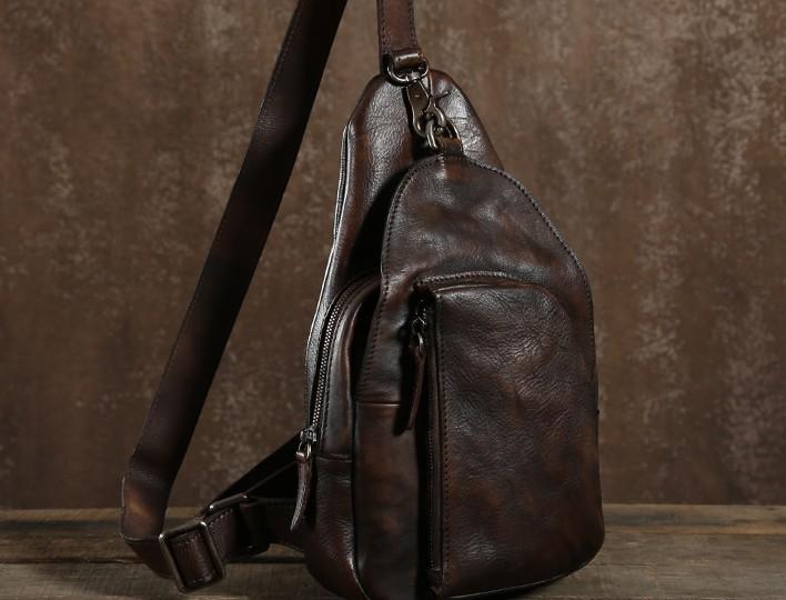 Style: Handmade Leather Mens Cool Chest Bag Sling Bag Crossbody Bag Travel Bag Hiking Bag for men