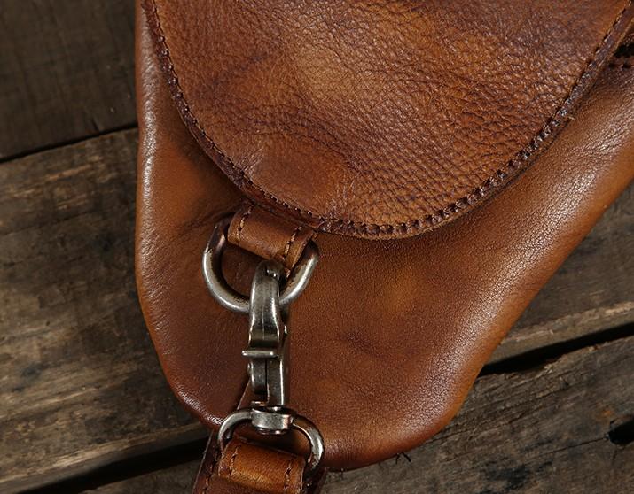 Design: Handmade Leather Mens Cool Chest Bag Sling Bag Crossbody Bag Travel Bag Hiking Bag for men