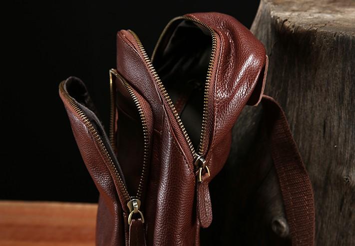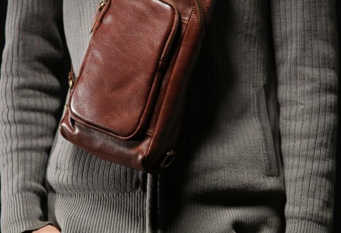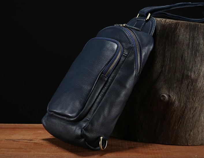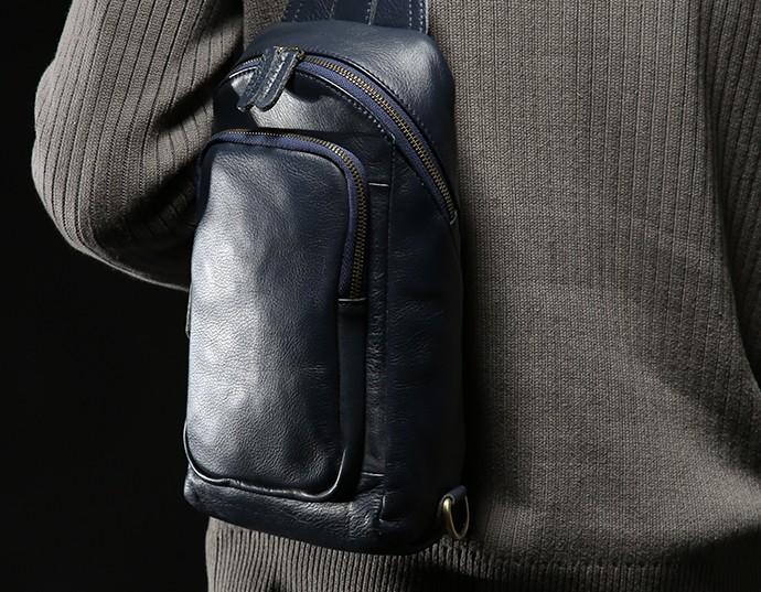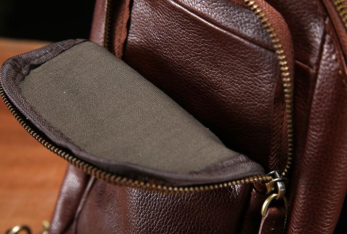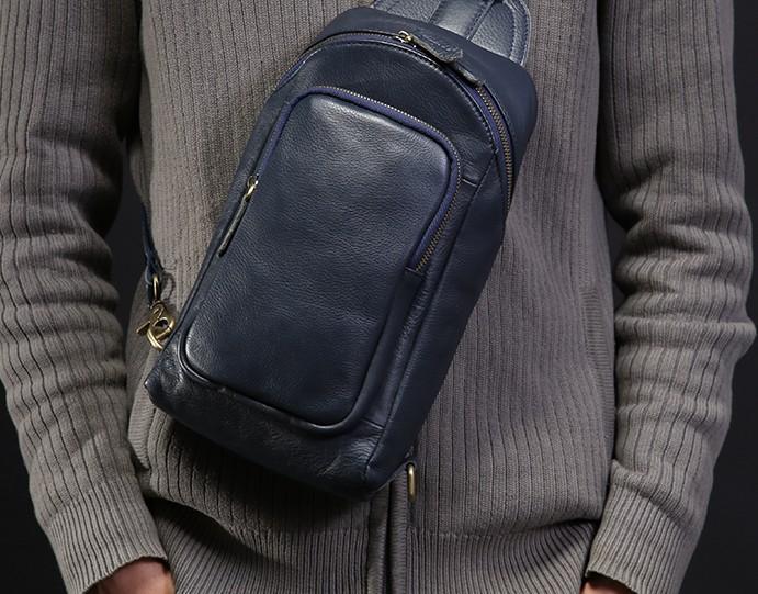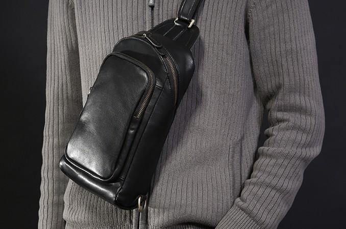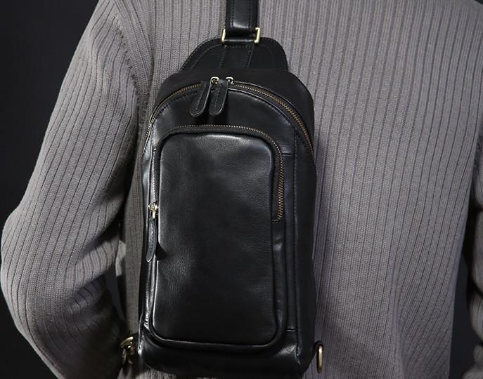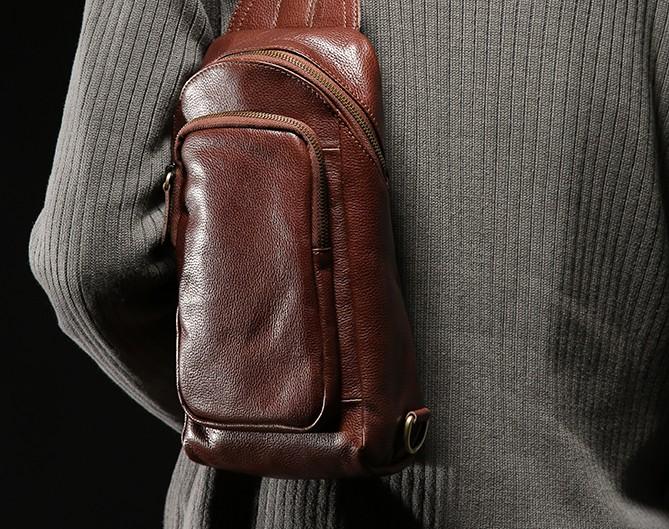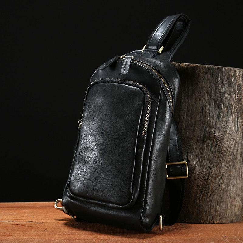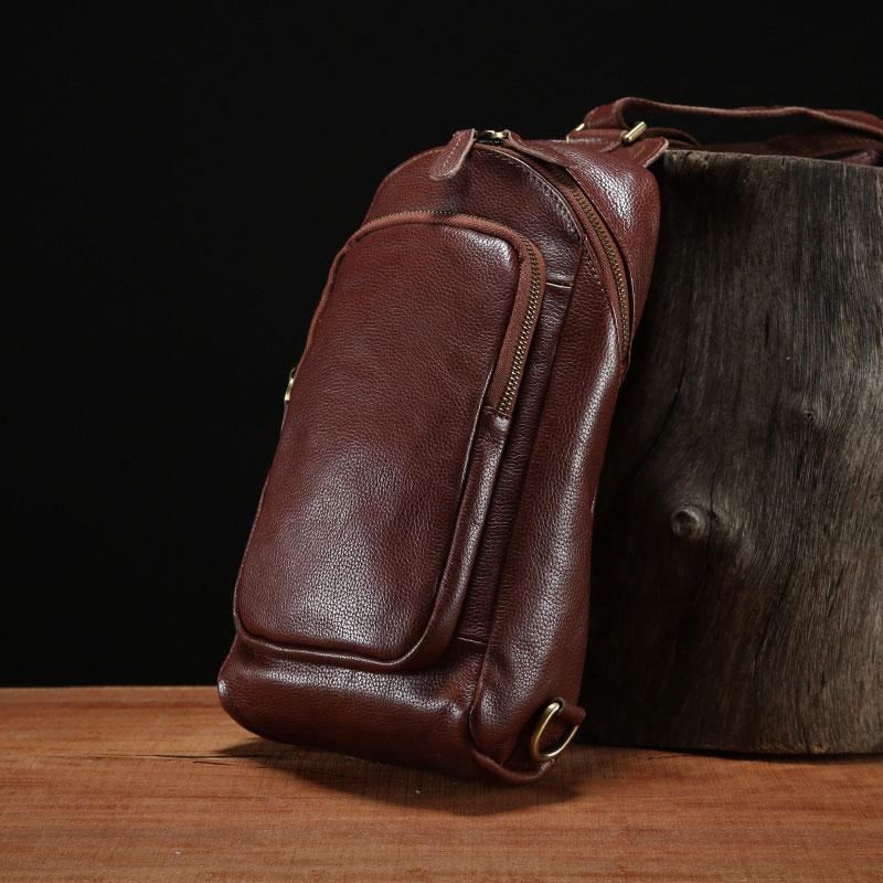 Design: Handmade Leather Mens Cool Chest Bag Sling Bag Crossbody Bag Travel Bag Hiking Bag for men