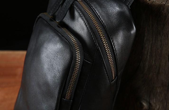 Style: Handmade Leather Mens Cool Chest Bag Sling Bag Crossbody Bag Travel Bag Hiking Bag for men