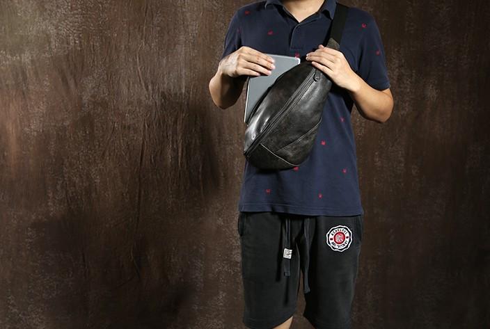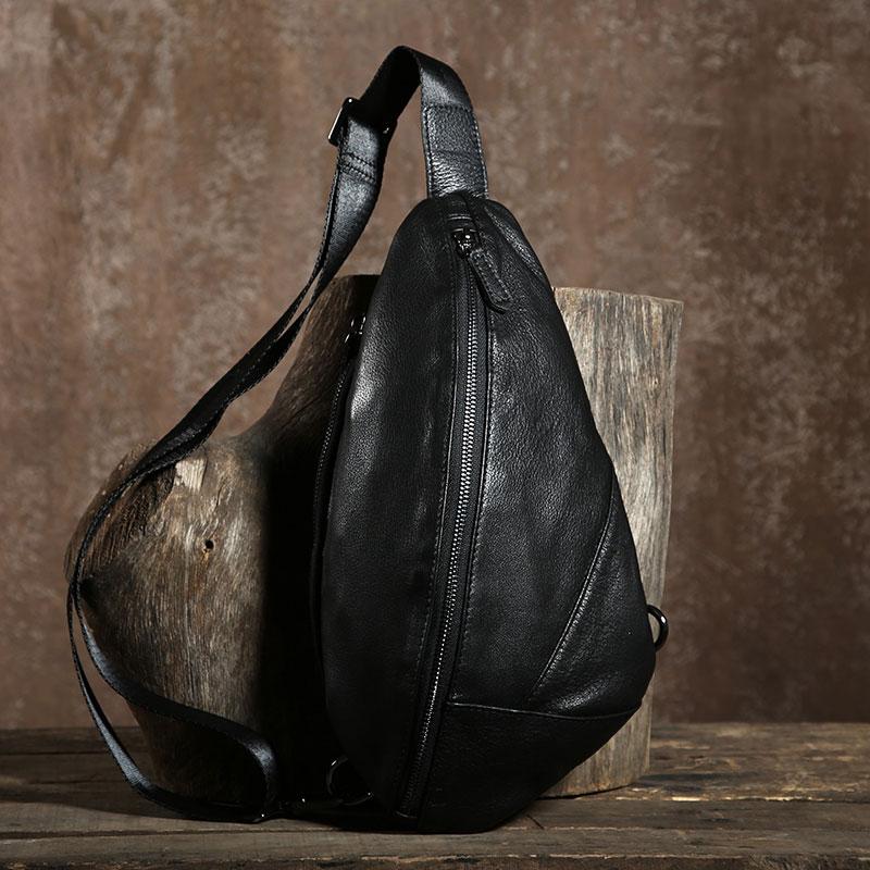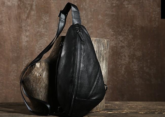 Design: Handmade Leather Mens Cool Chest Bag Sling Bag Crossbody Bag Travel Bag Hiking Bag for men
