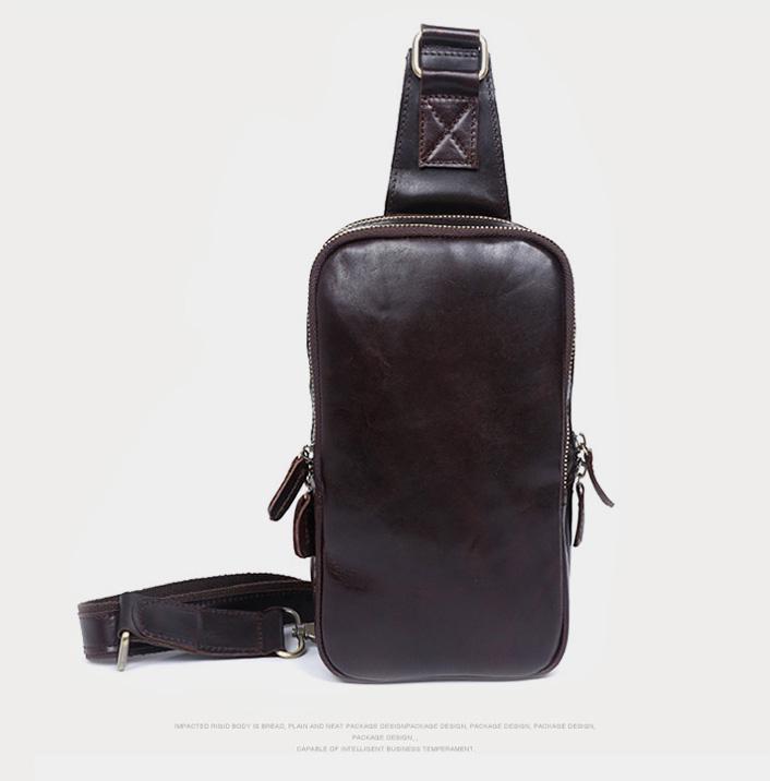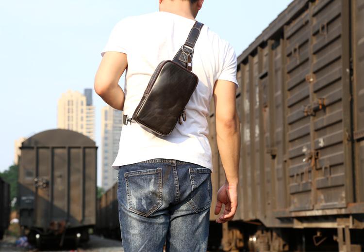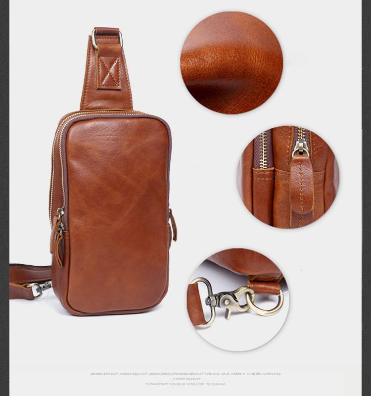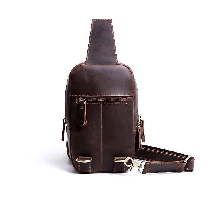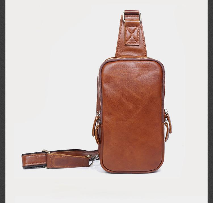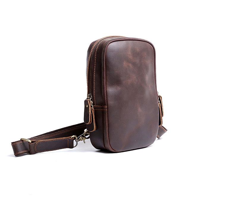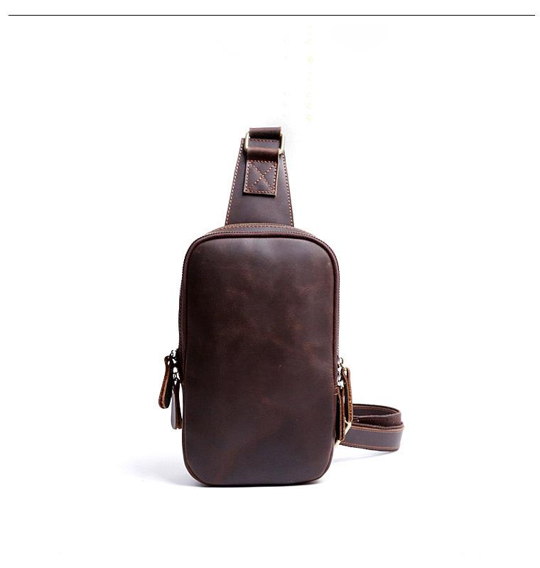 Design: Handmade Leather Mens Cool Chest Bag Sling Bag Crossbody Bag Travel Bag Hiking Bag for men