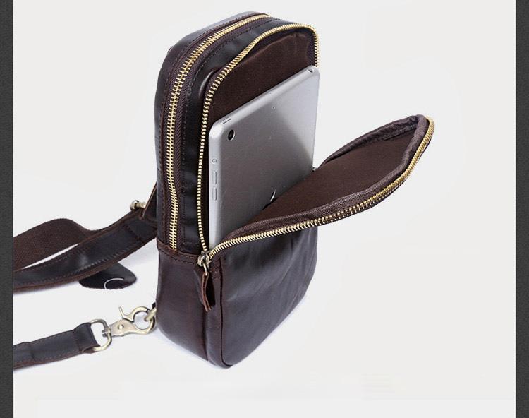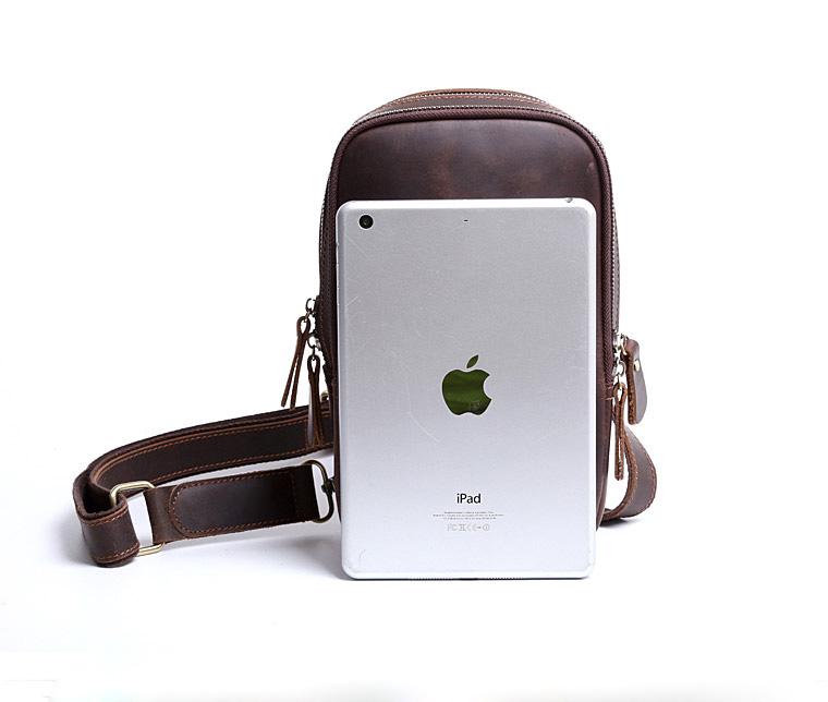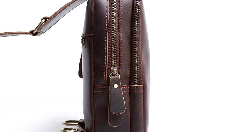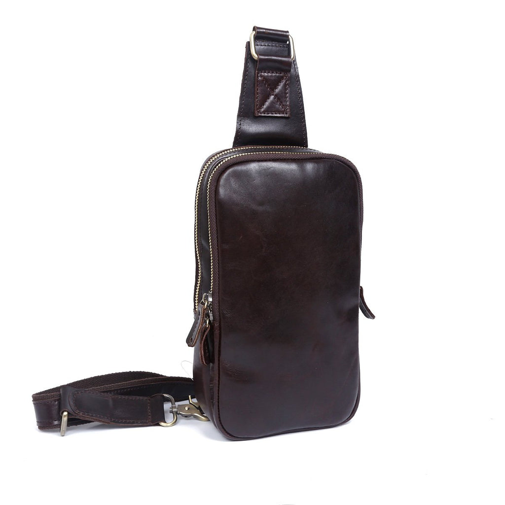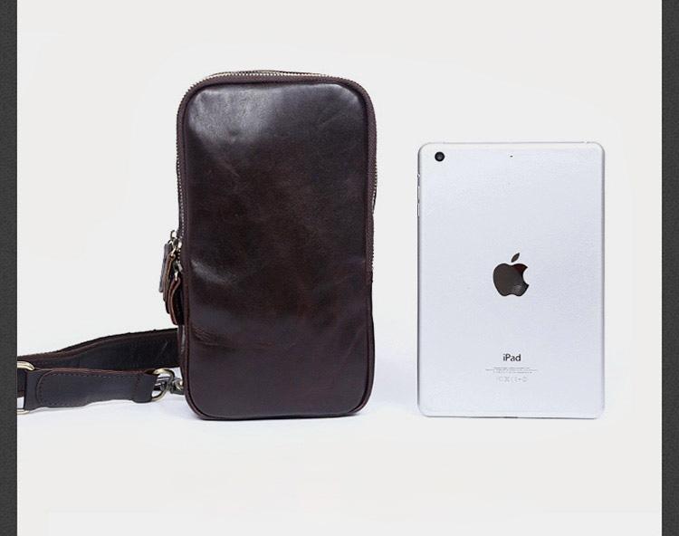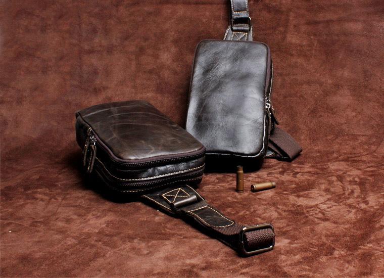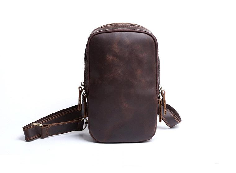 Design: Handmade Leather Mens Cool Chest Bag Sling Bag Crossbody Bag Travel Bag Hiking Bag for men