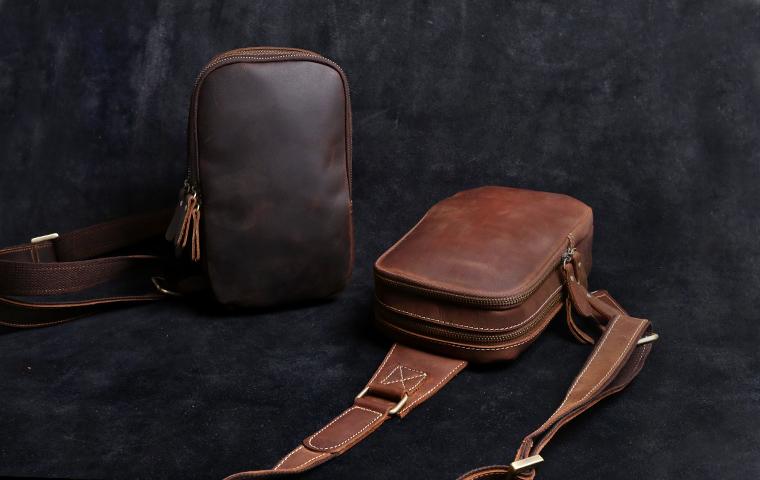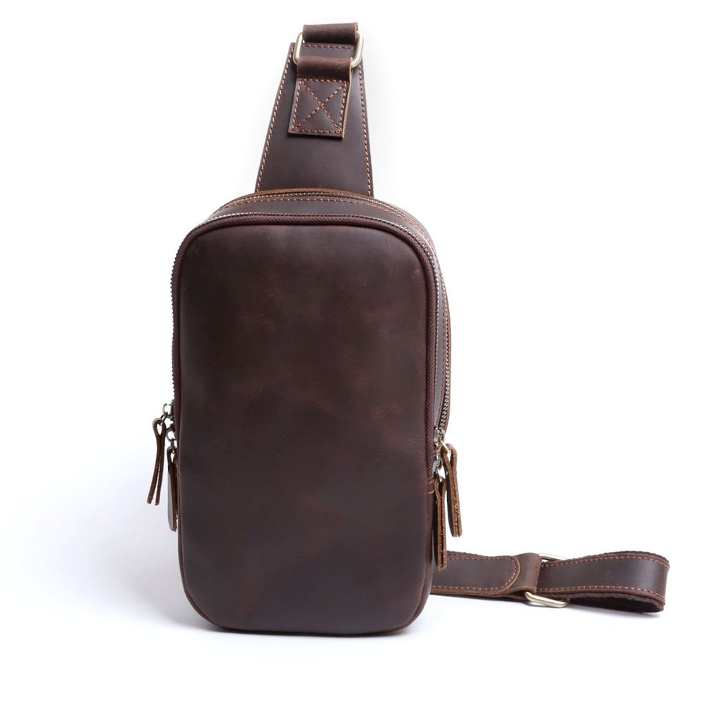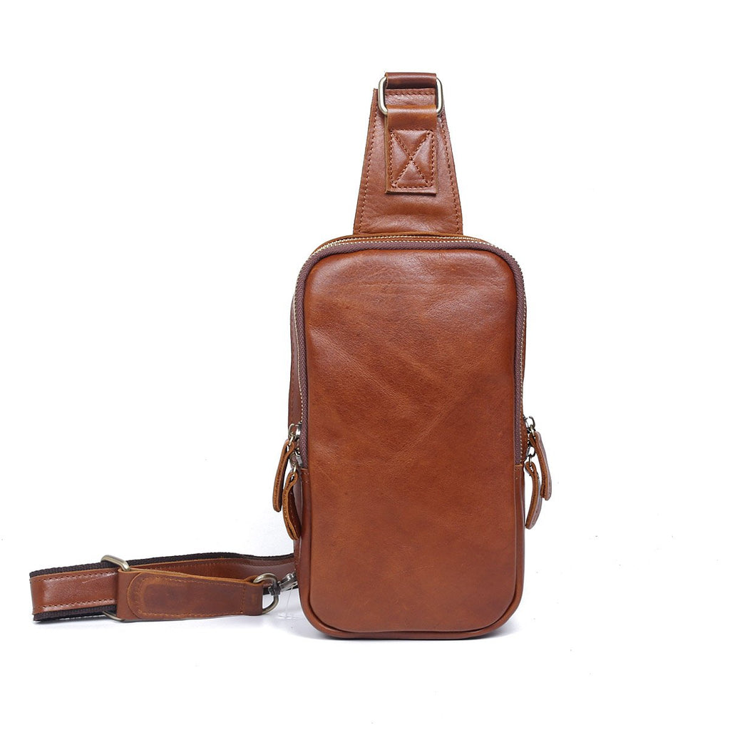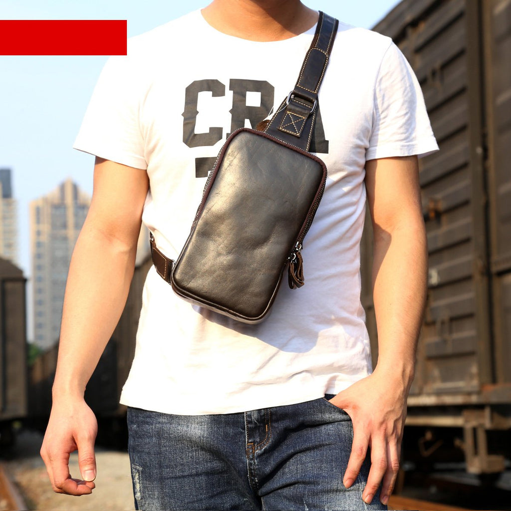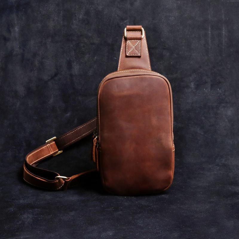 Style: Handmade Leather Mens Cool Chest Bag Sling Bag Crossbody Bag Travel Bag Hiking Bag for men