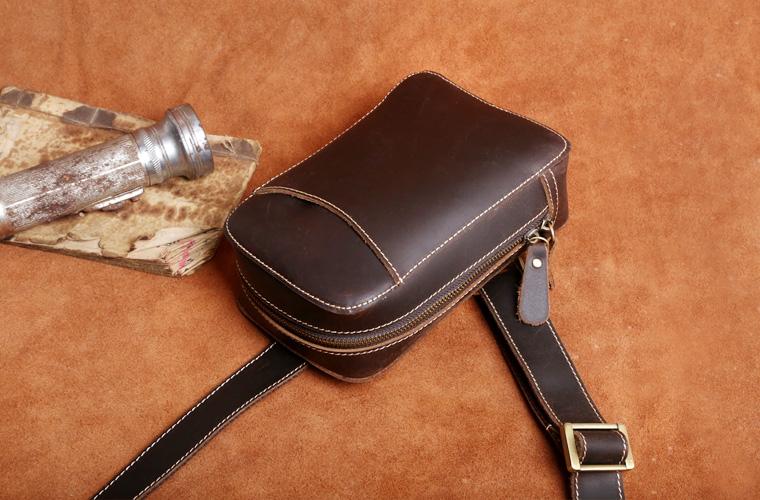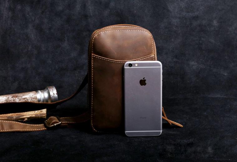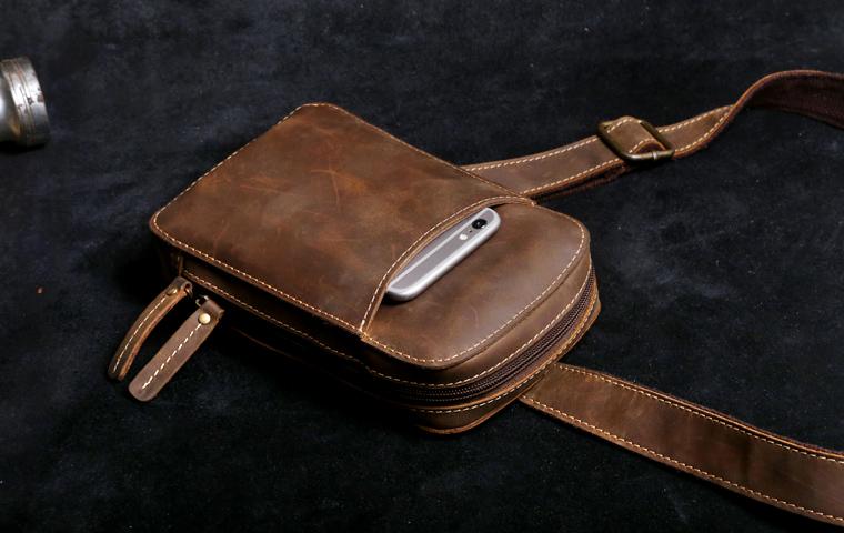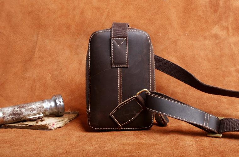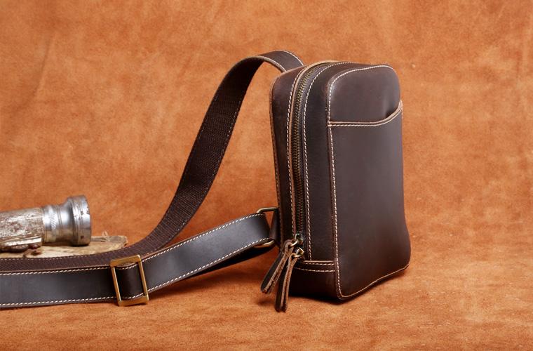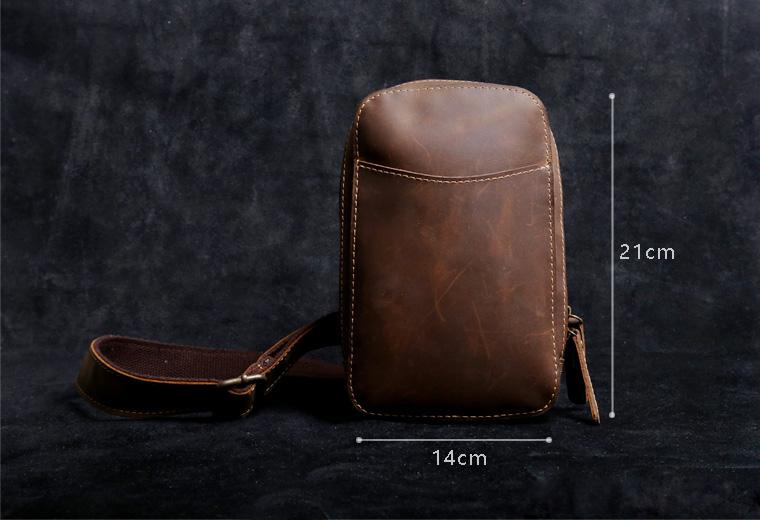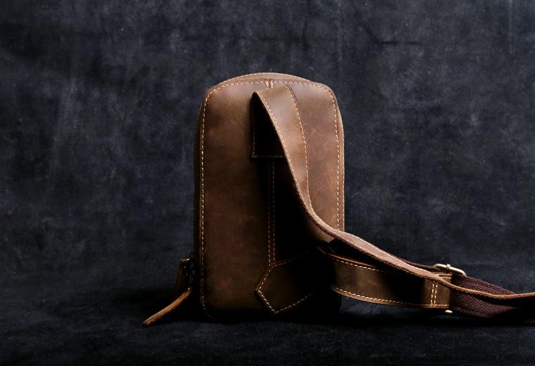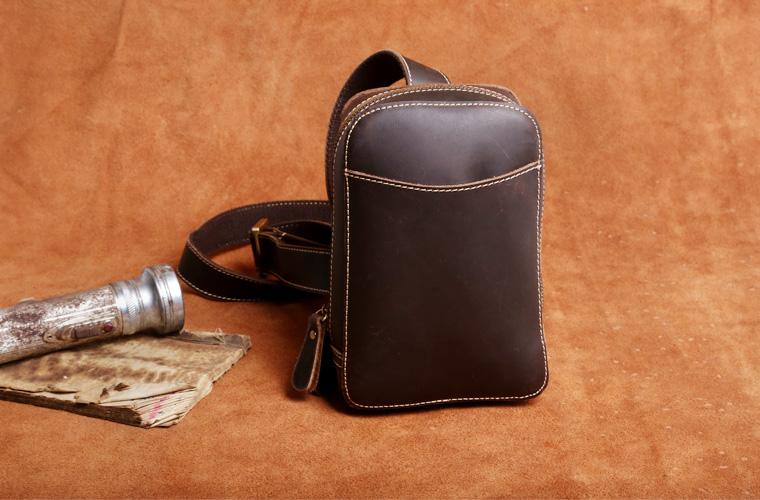 Design: Handmade Leather Mens Cool Chest Bag Sling Bag Crossbody Bag Travel Bag Hiking Bag for men