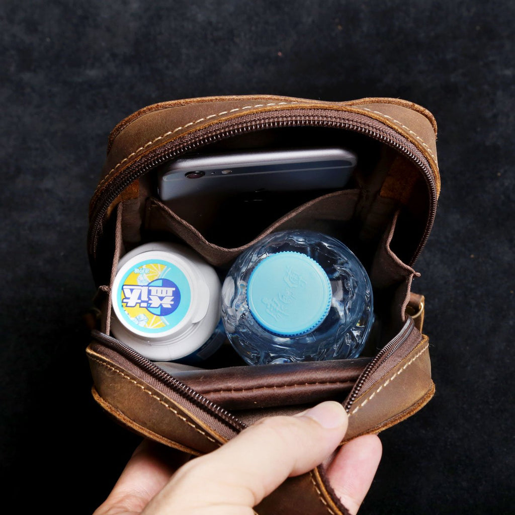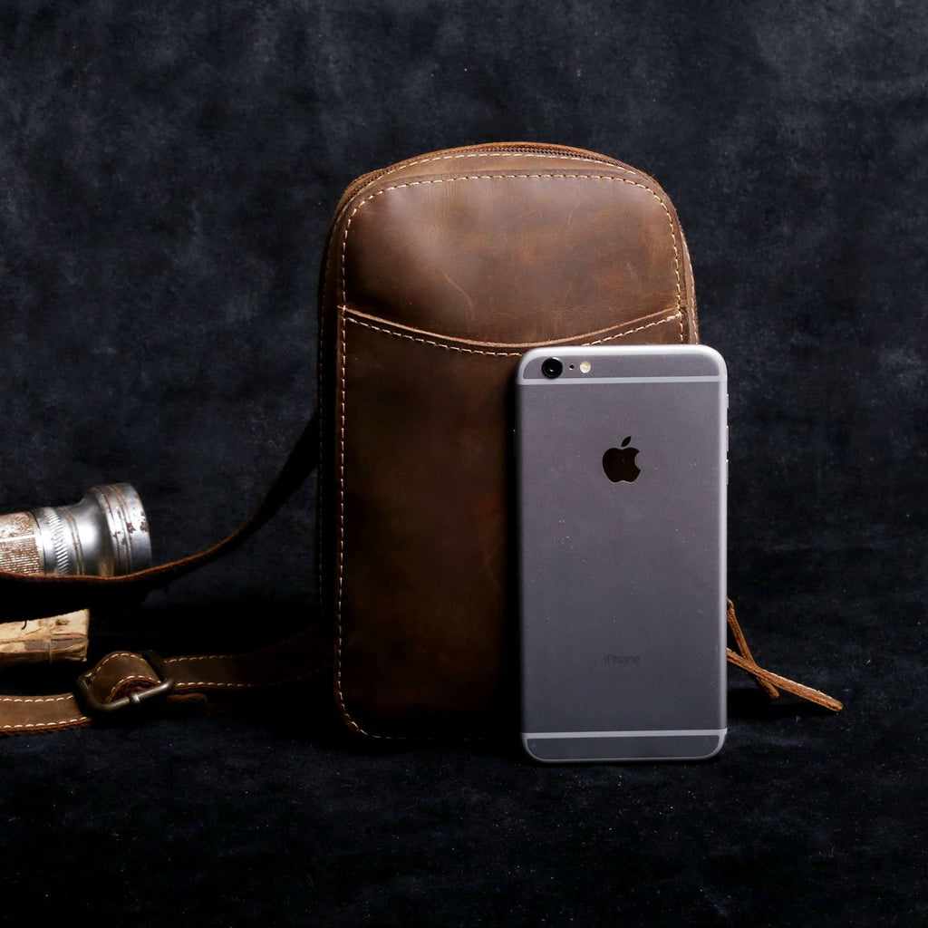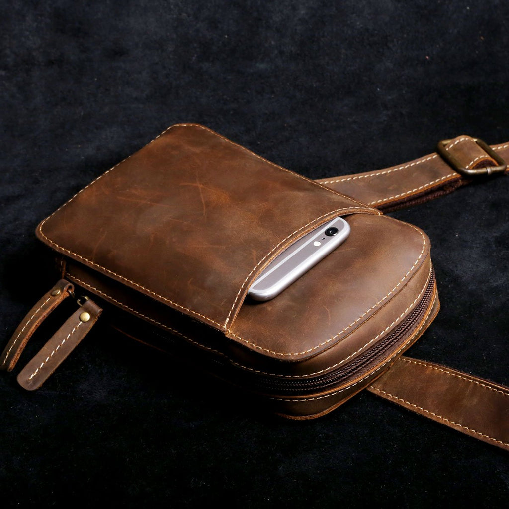 Handmade Leather Mens Cool Chest Bag Sling Bag Crossbody Bag Travel Bag Hiking Bag for men