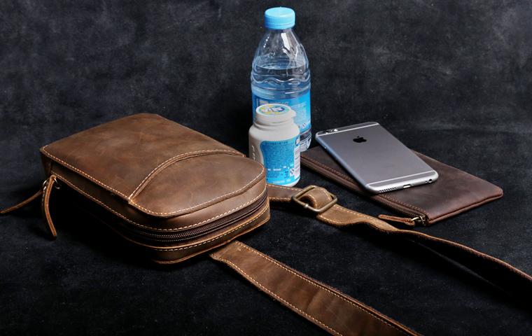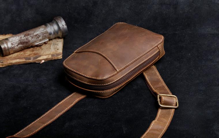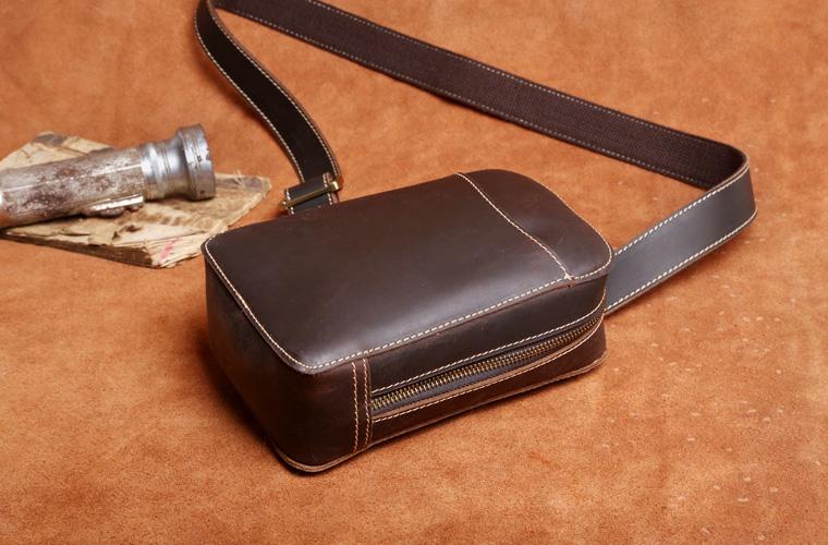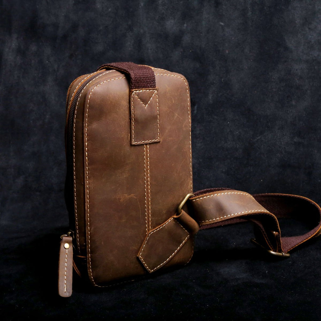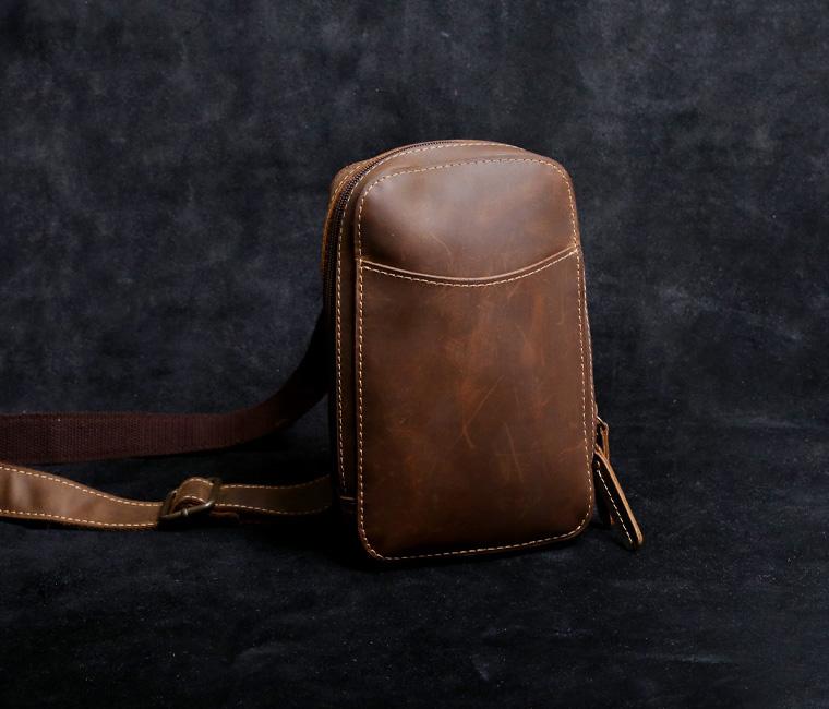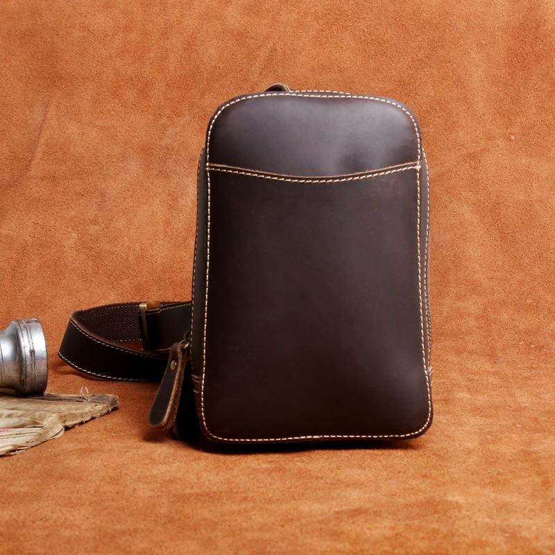 Style: Handmade Leather Mens Cool Chest Bag Sling Bag Crossbody Bag Travel Bag Hiking Bag for men