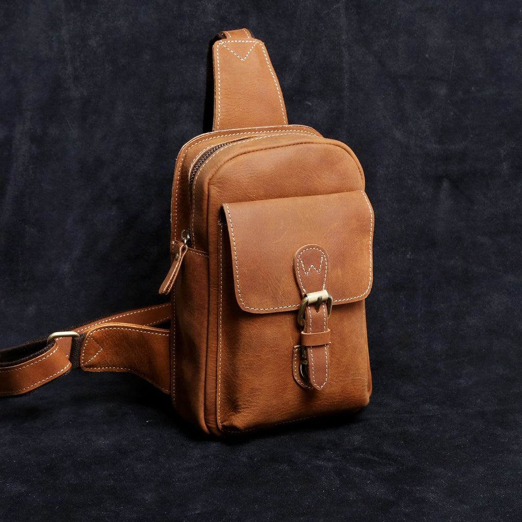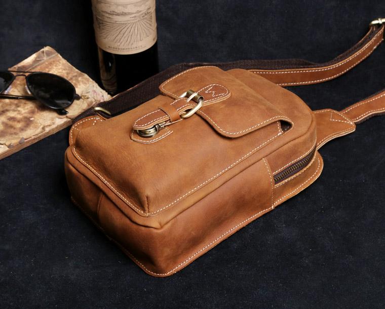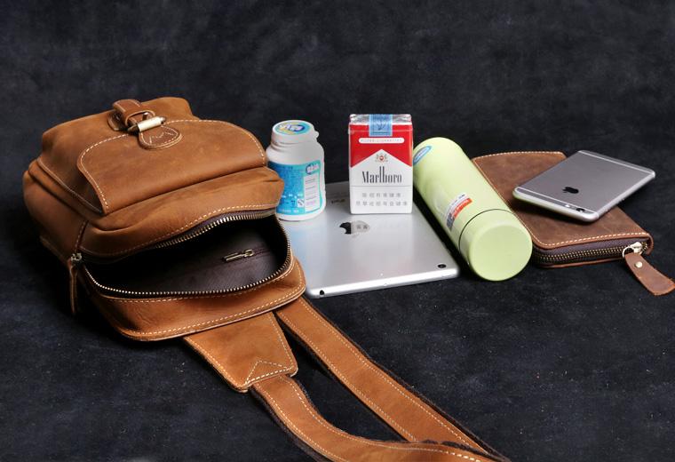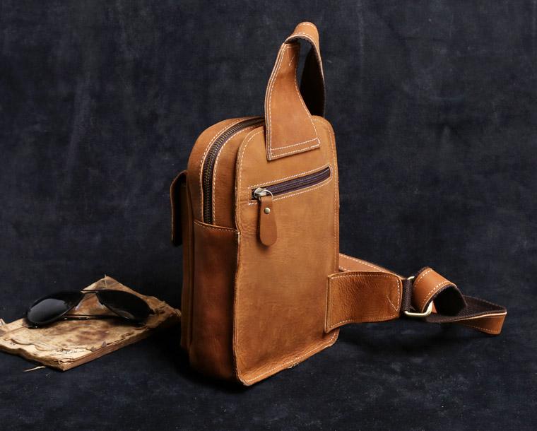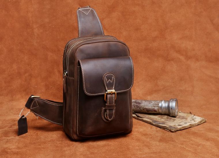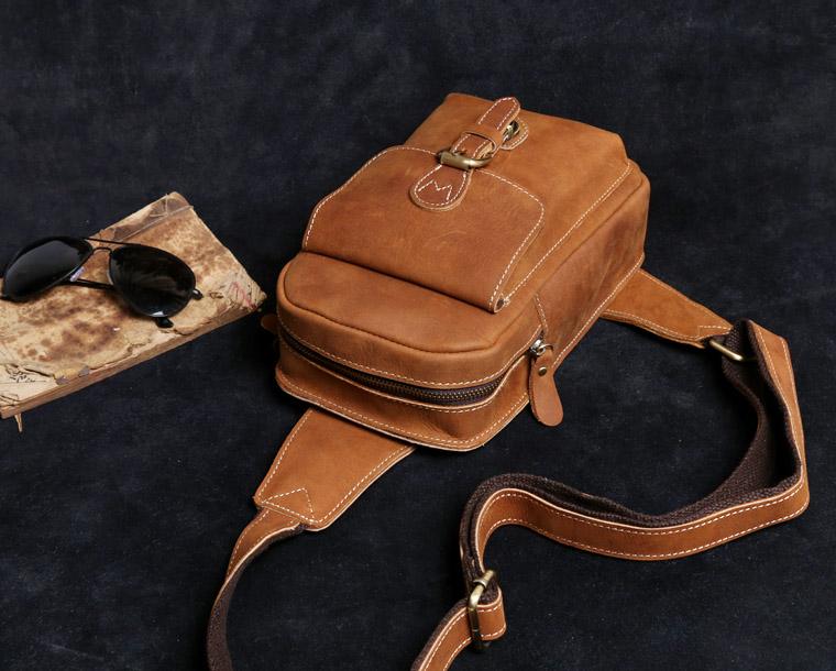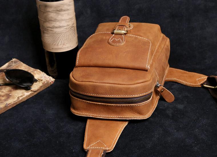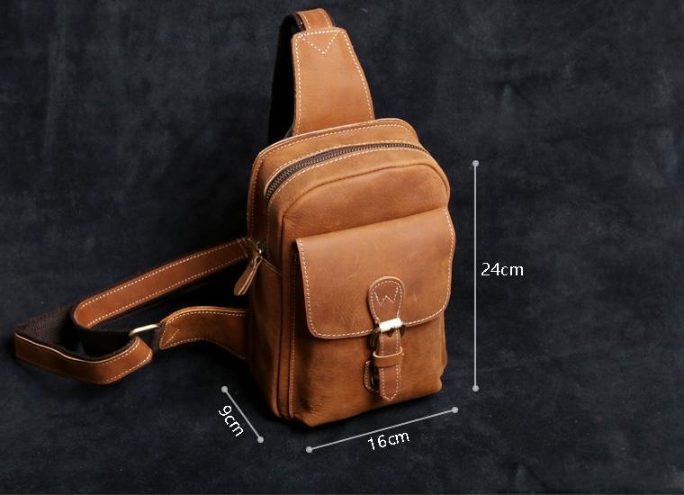 Style: Handmade Leather Mens Cool Chest Bag Sling Bag Crossbody Bag Travel Bag Hiking Bag for men