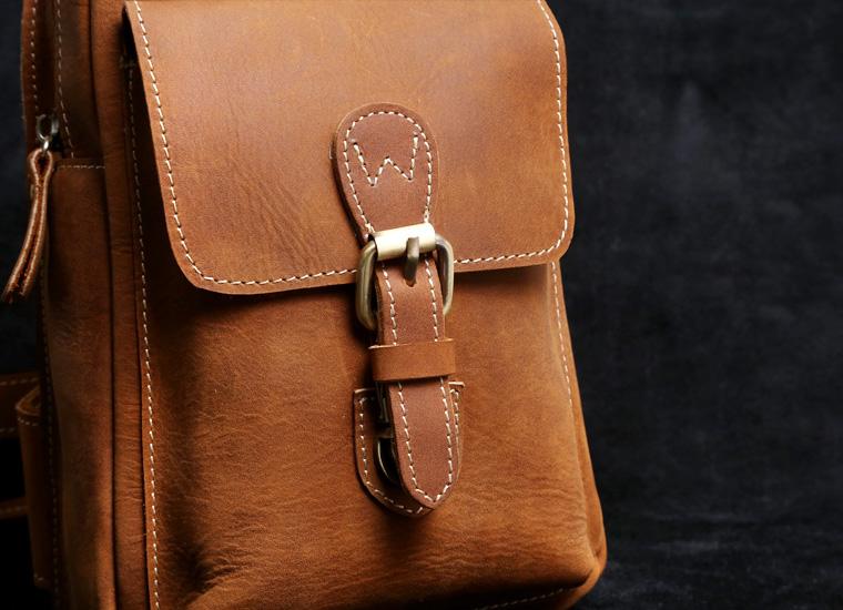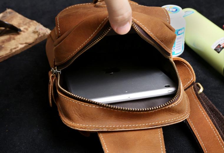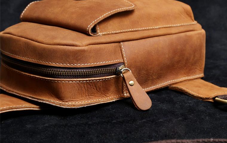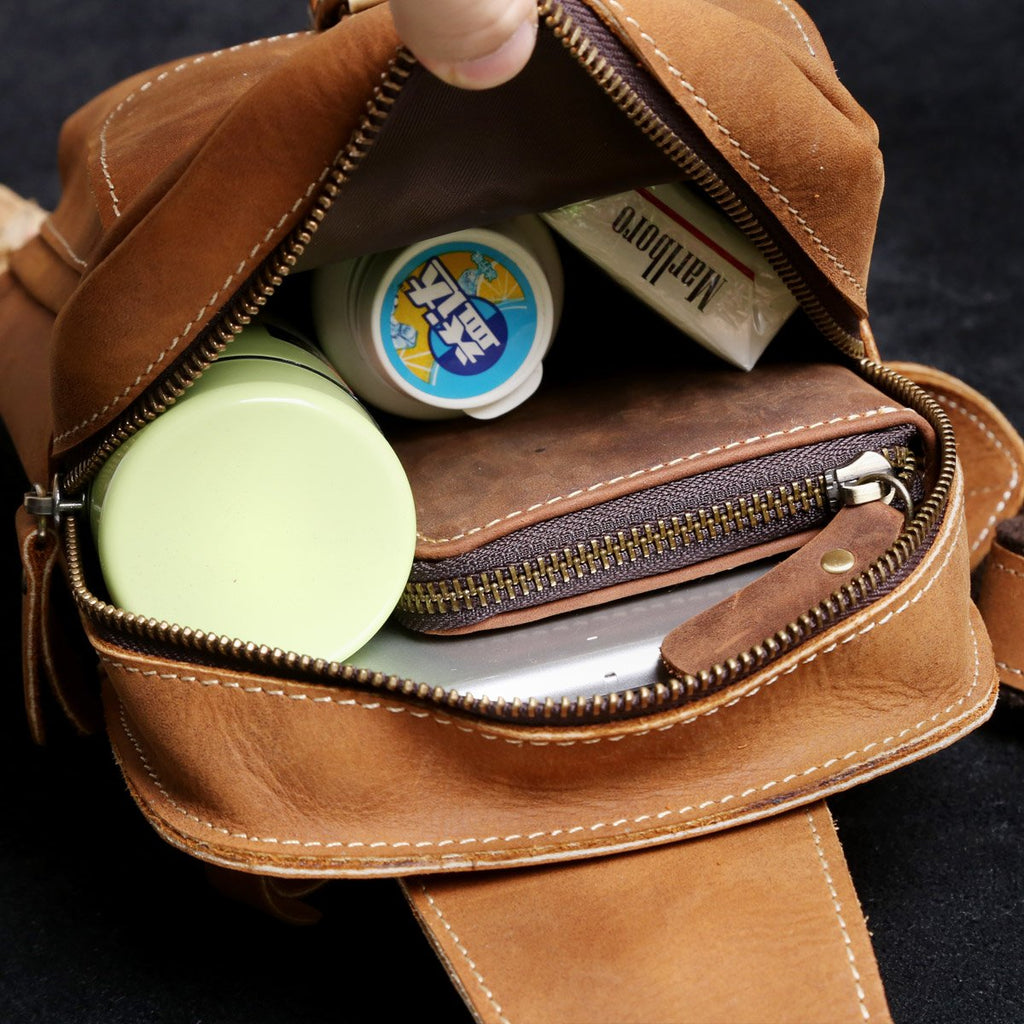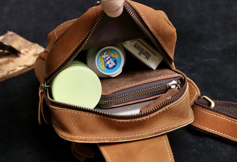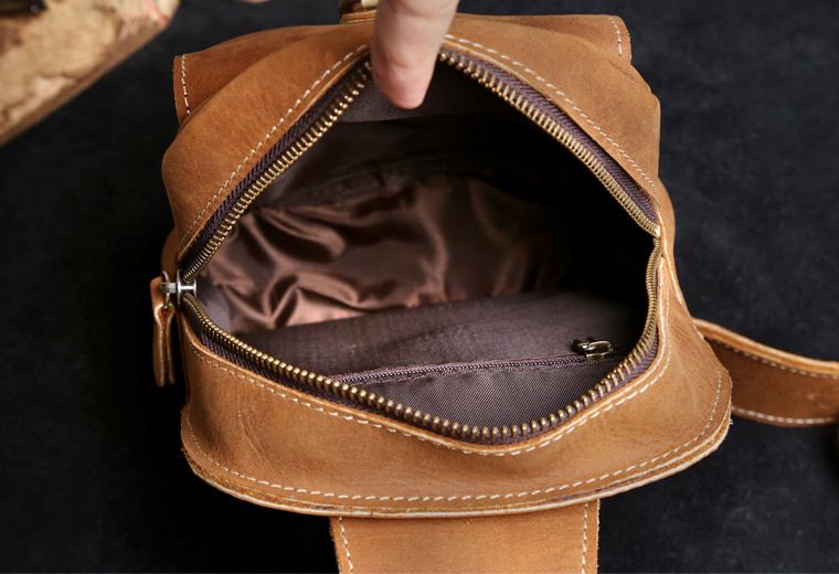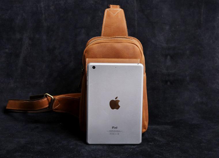 Style: Handmade Leather Mens Cool Chest Bag Sling Bag Crossbody Bag Travel Bag Hiking Bag for men