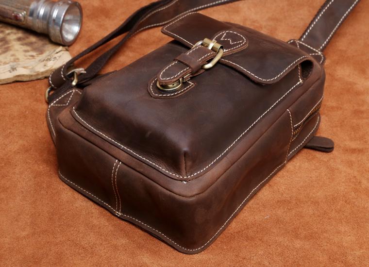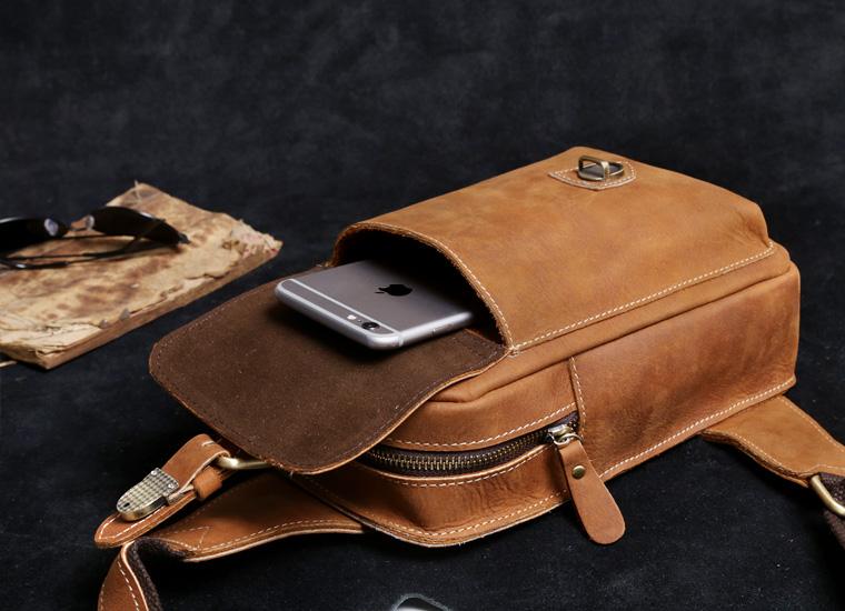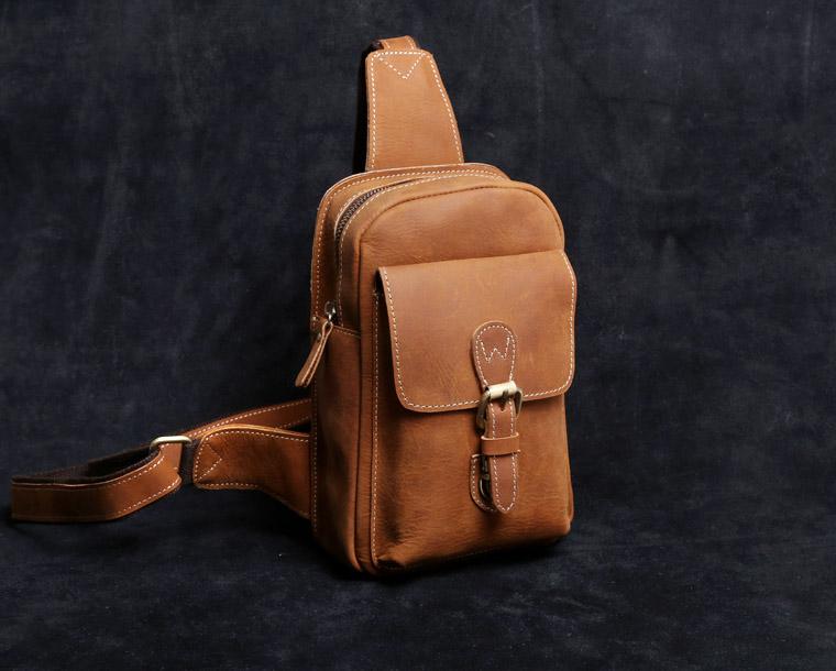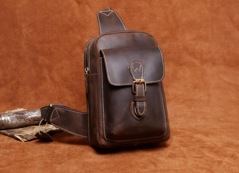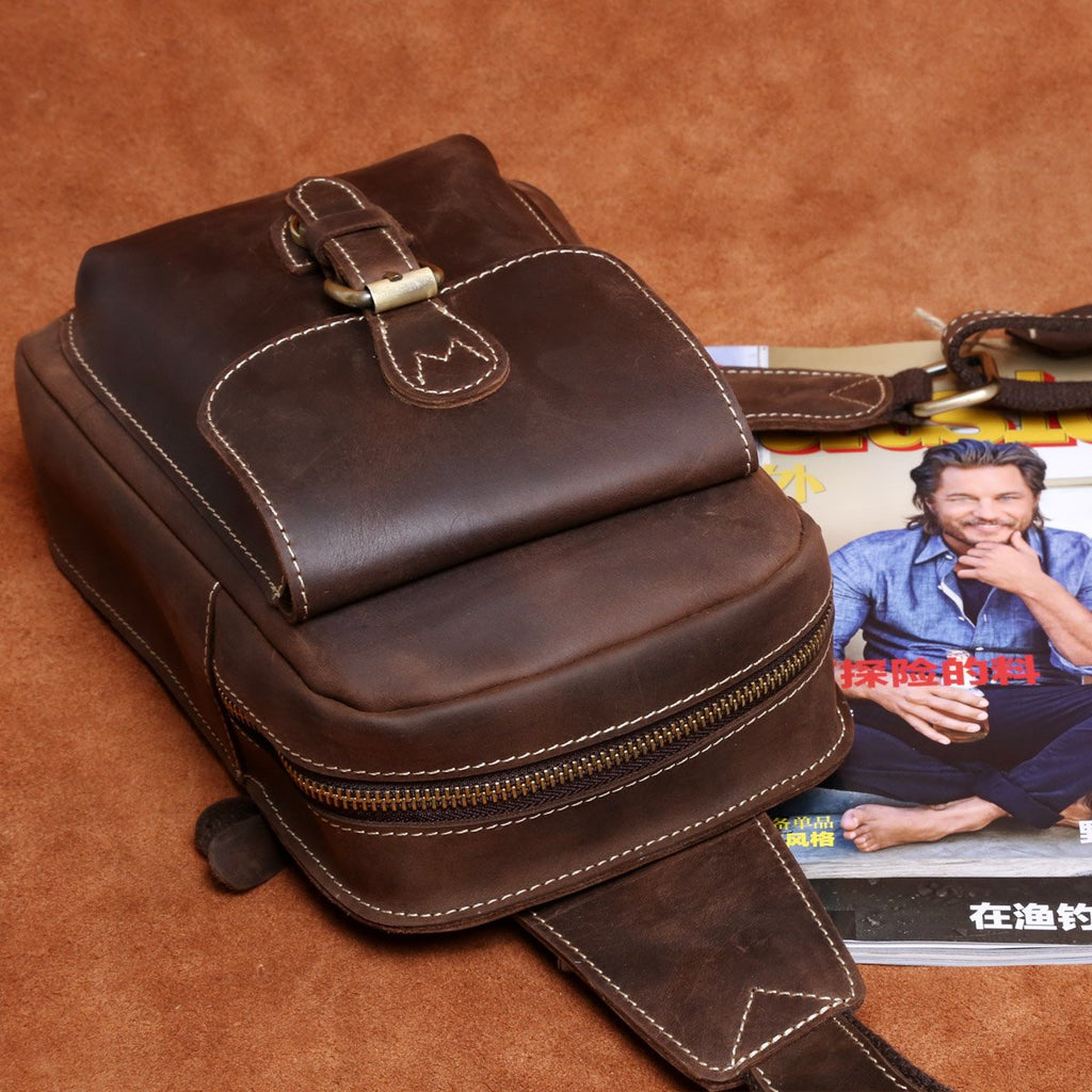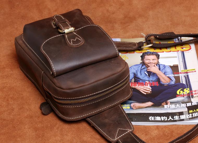 Design: Handmade Leather Mens Cool Chest Bag Sling Bag Crossbody Bag Travel Bag Hiking Bag for men