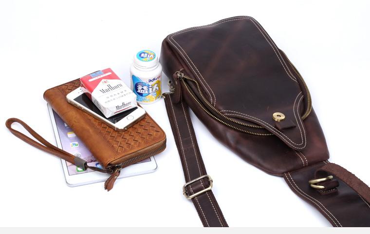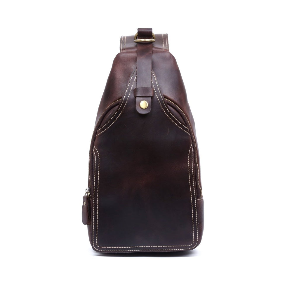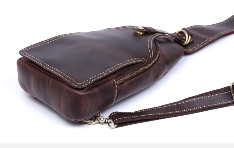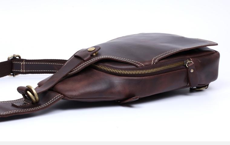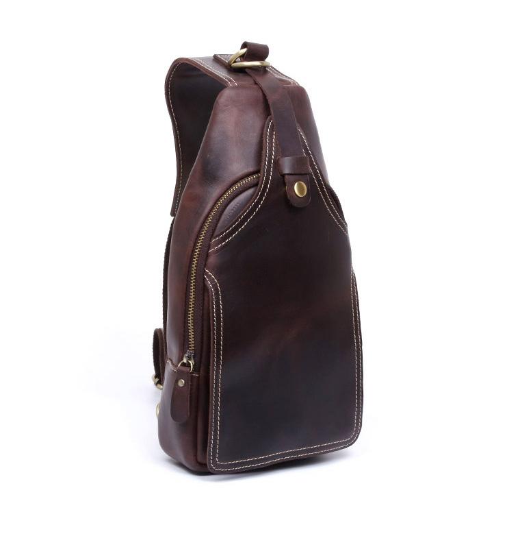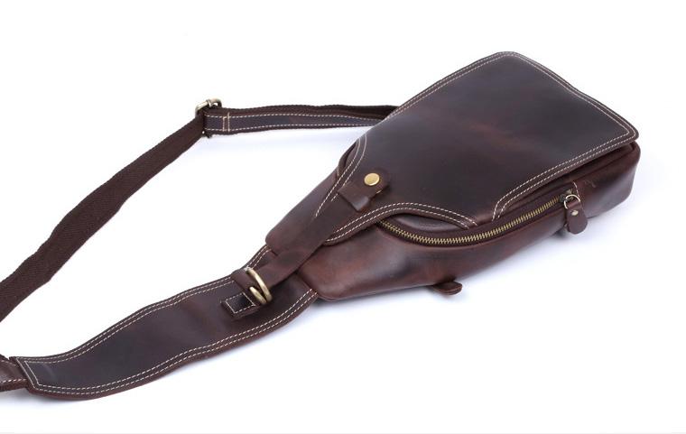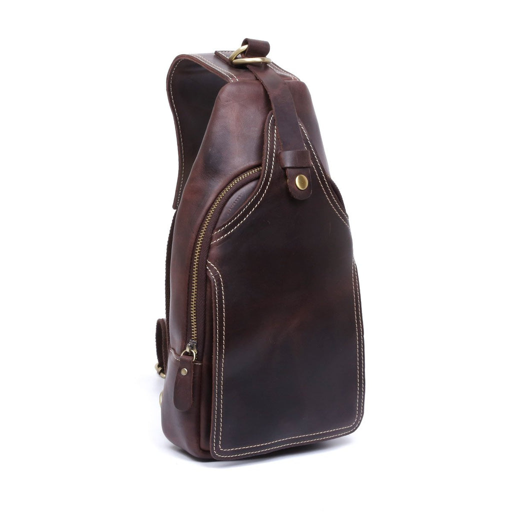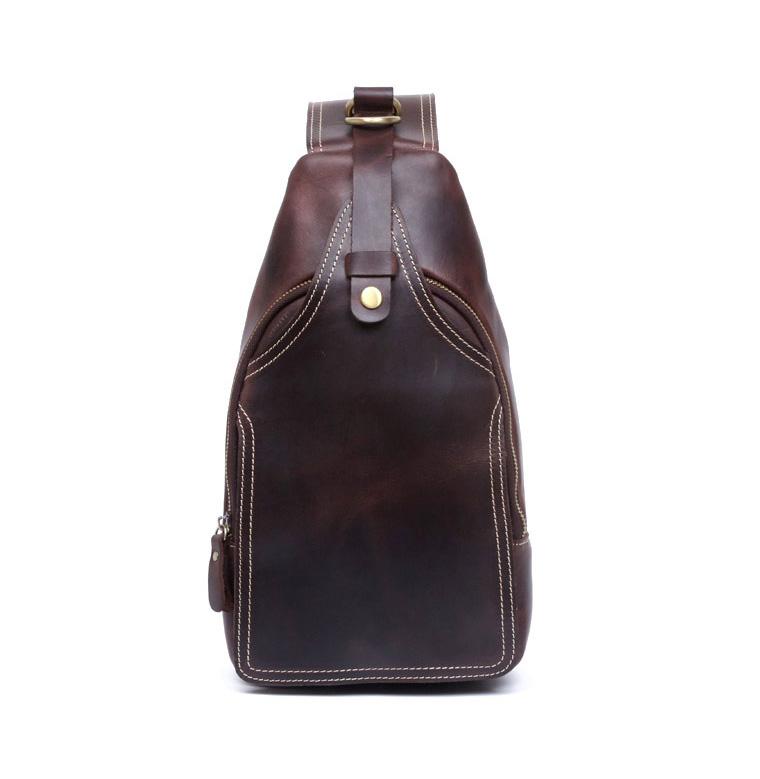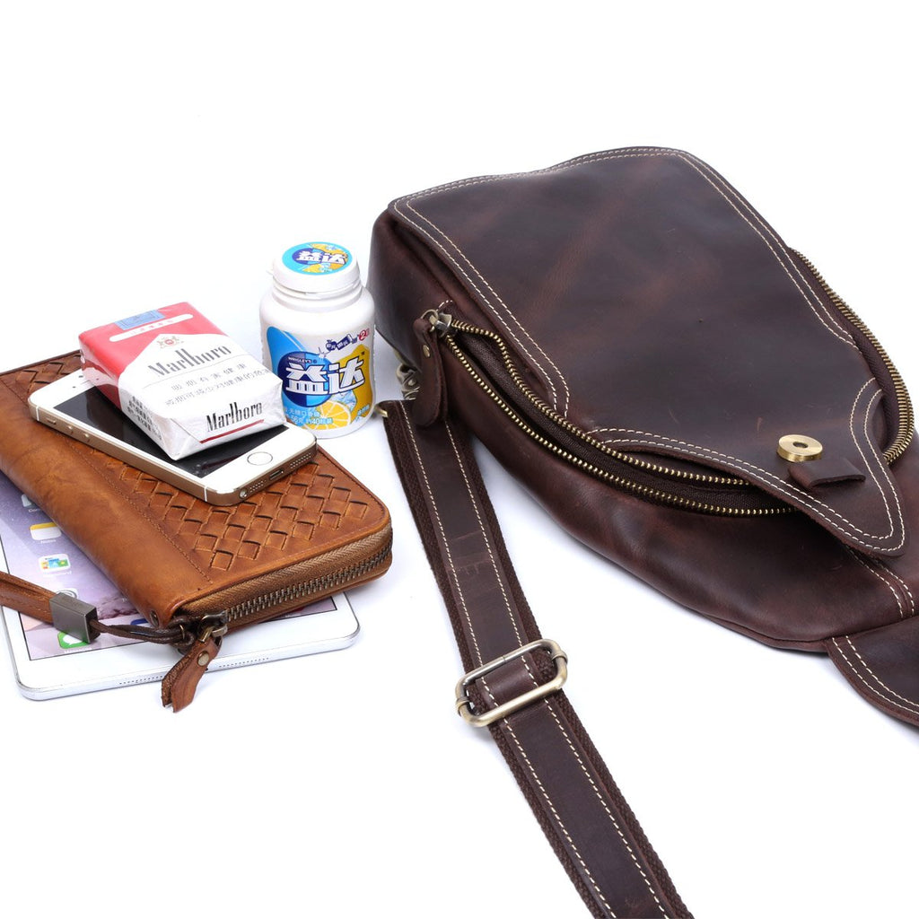 Style: Handmade Leather Mens Cool Chest Bag Sling Bag Crossbody Bag Travel Bag Hiking Bag for men