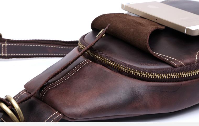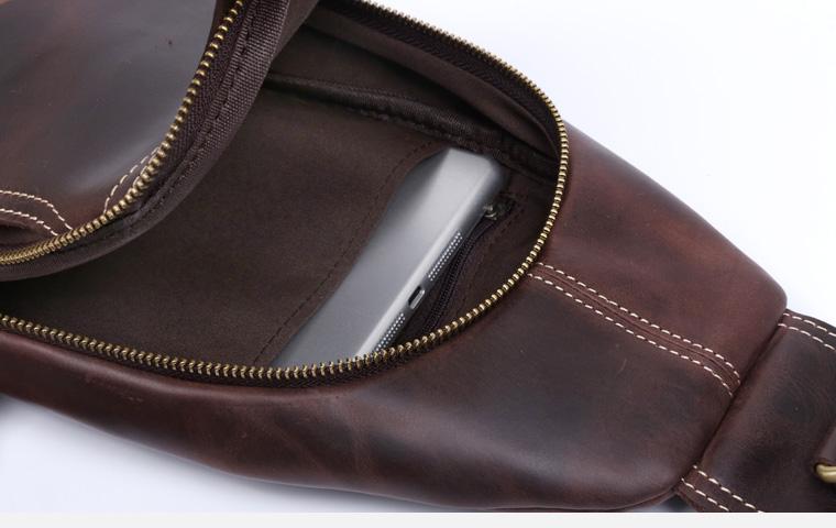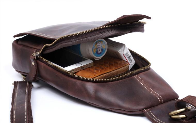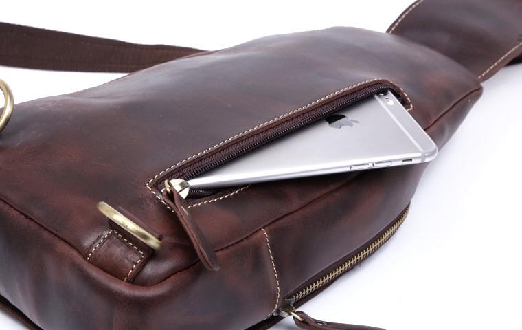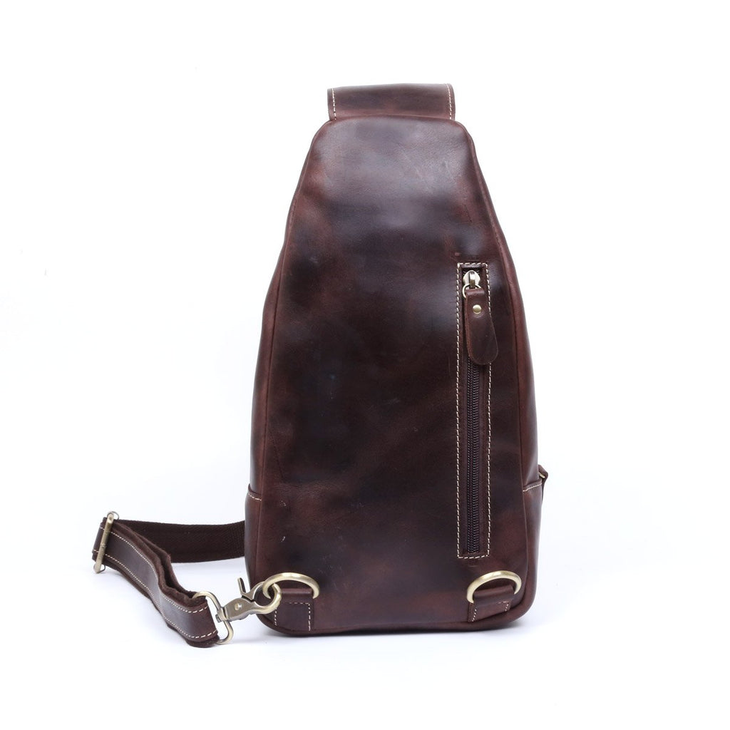 Design: Handmade Leather Mens Cool Chest Bag Sling Bag Crossbody Bag Travel Bag Hiking Bag for men