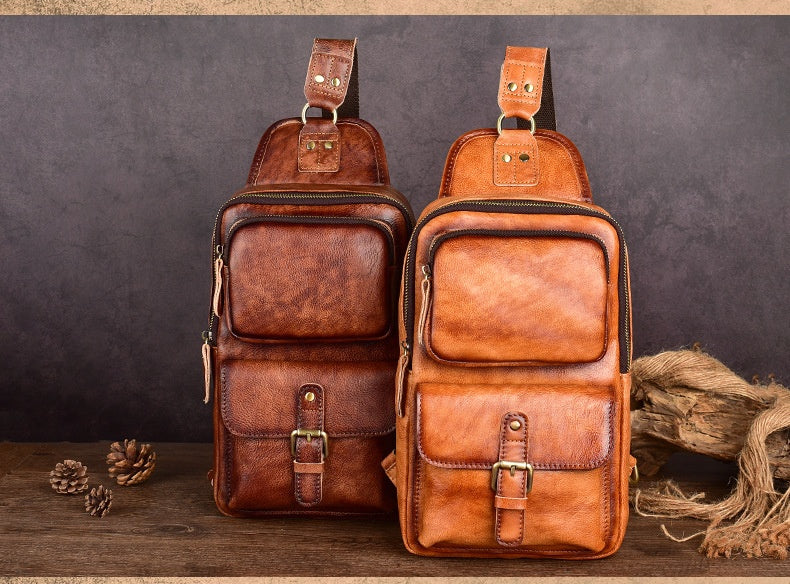 Experience the perfect combination of traditional leather craftsmanship and modern functionality with this exceptional Leather Chest Bag for Men - your ideal companion for urban exploration, travel, and everyday excellence.