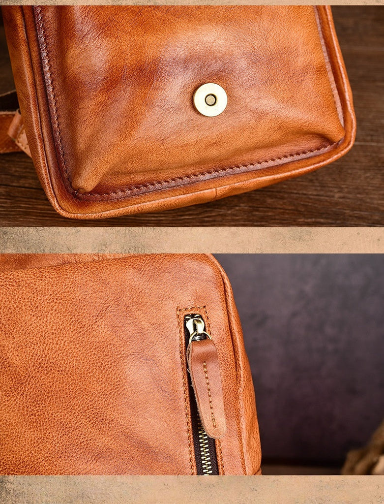 Design: Brown Leather Chest Bag for Men Mens Chest Crossbody Bag Leather Cross Chest Bag Men's