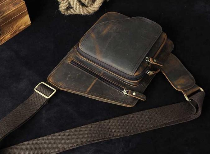 Leather Mens Chest Bag Sling Bag Sling Shoulder Bag Sling Backpacksfor men