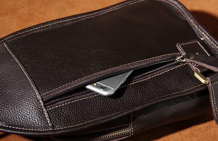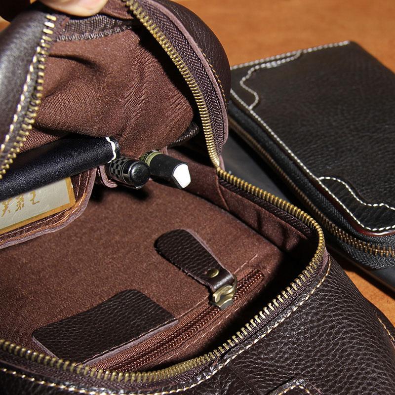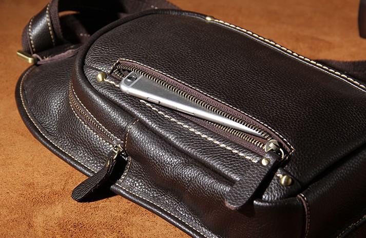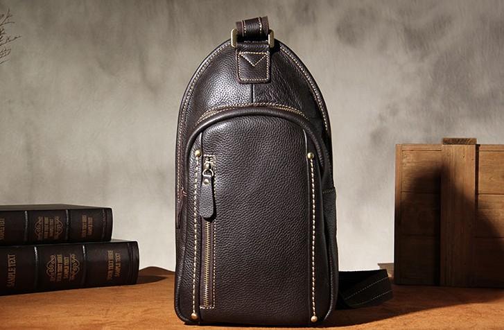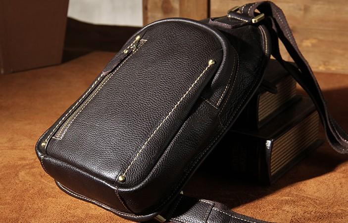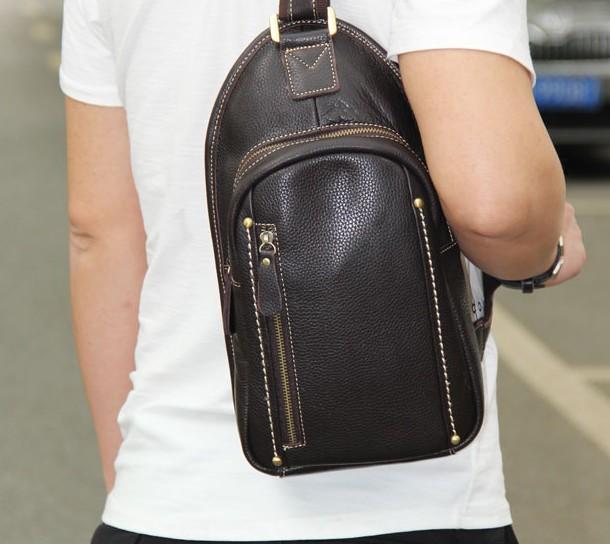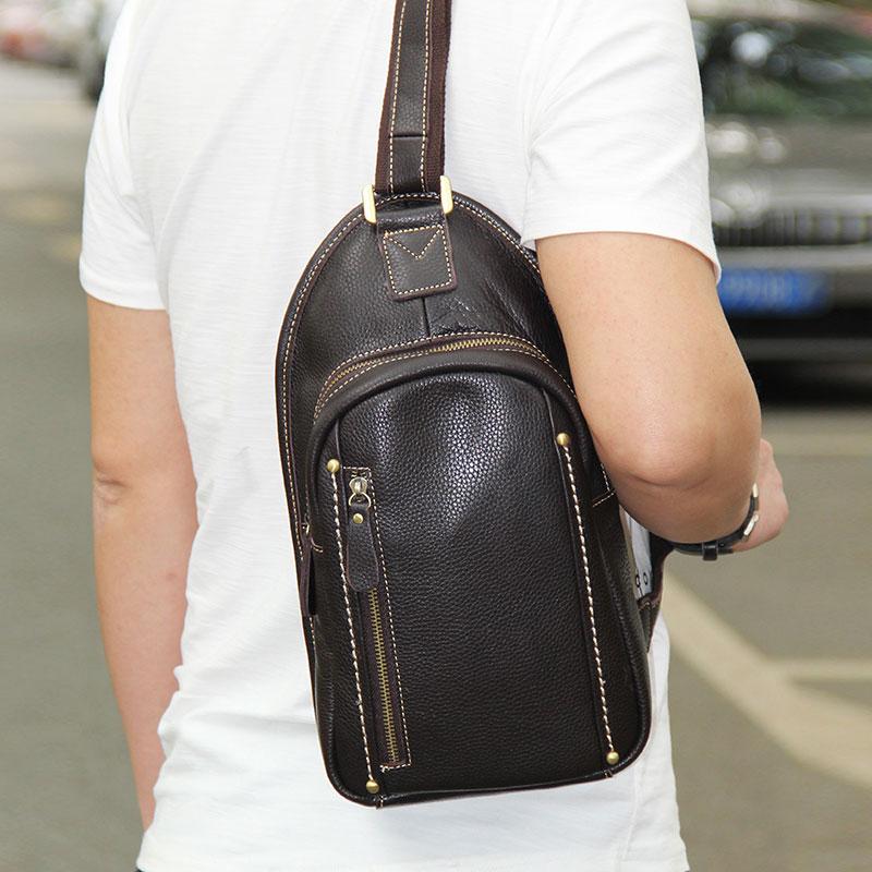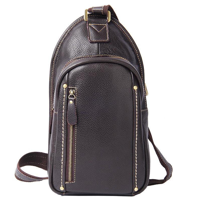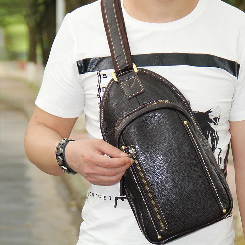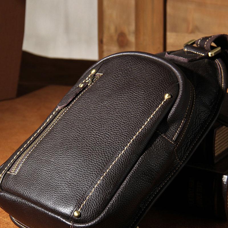 Design: LEATHER MENS COOL SLING BAG Black Coffee CROSSBODY BAG CHEST BAG FOR MEN