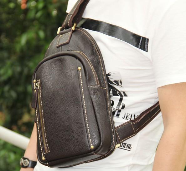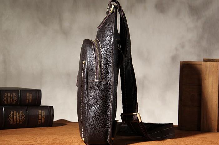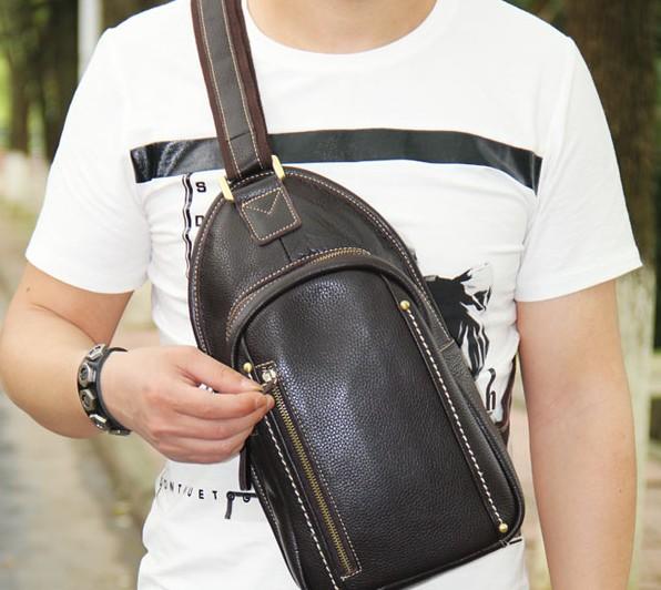 Style: LEATHER MENS COOL SLING BAG Black Coffee CROSSBODY BAG CHEST BAG FOR MEN
