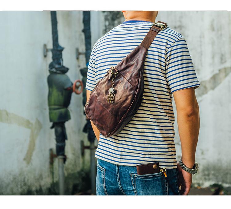 Style: Leather Mens Cool Sling Bag Crossbody Bag Chest Bag Fanny Pack for men