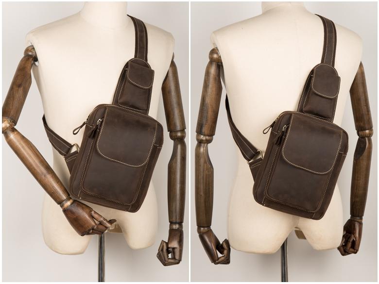 Style: Leather Mens Cool Sling Bag Crossbody Bag Chest Bag for men