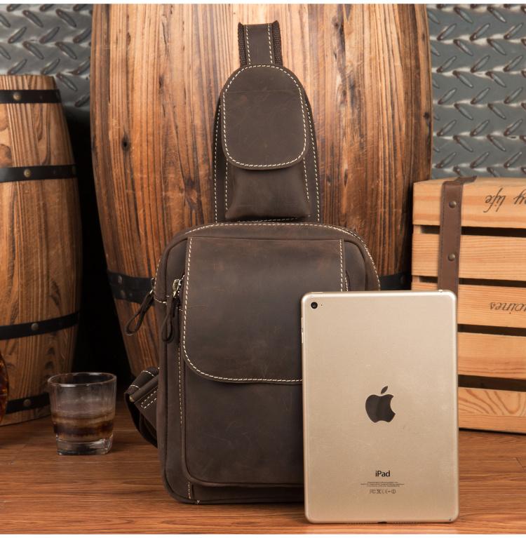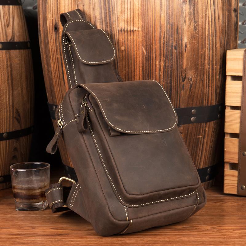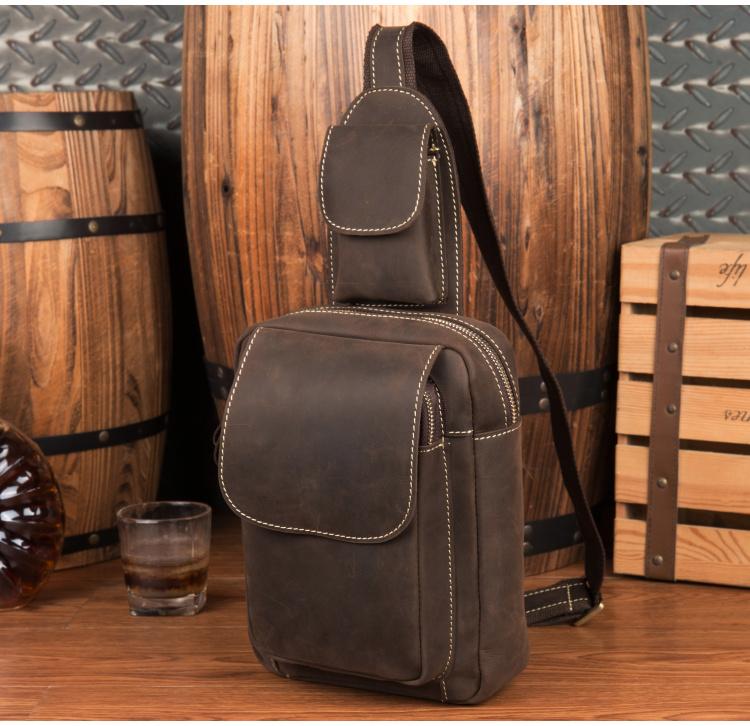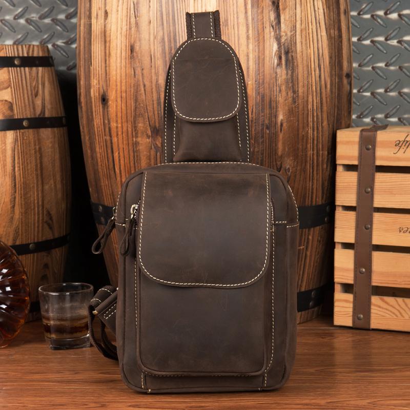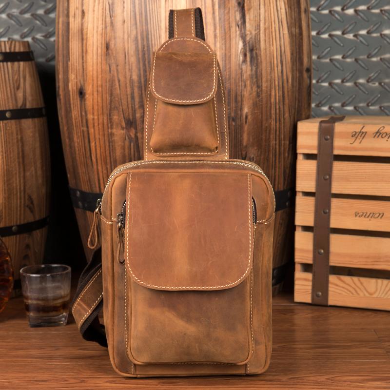 Leather Mens Cool Sling Bag Crossbody Bag Chest Bag for men