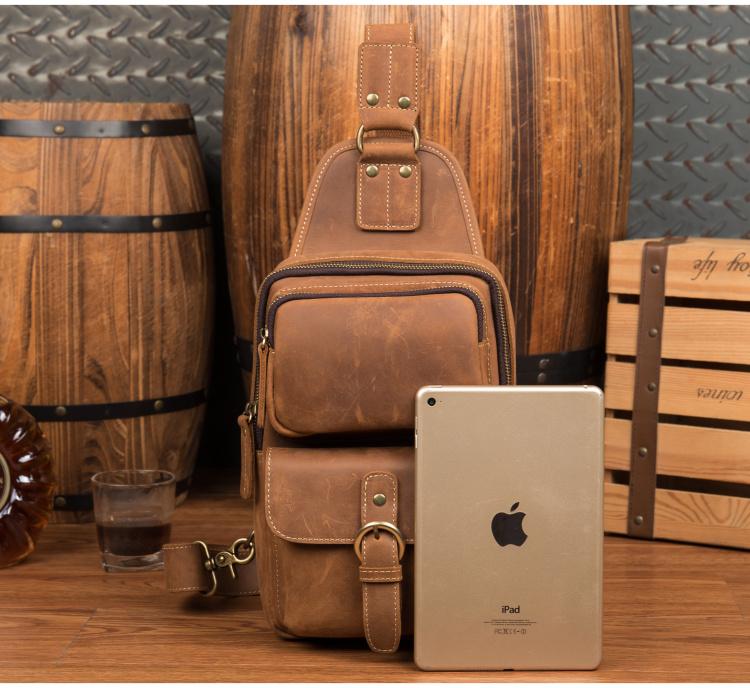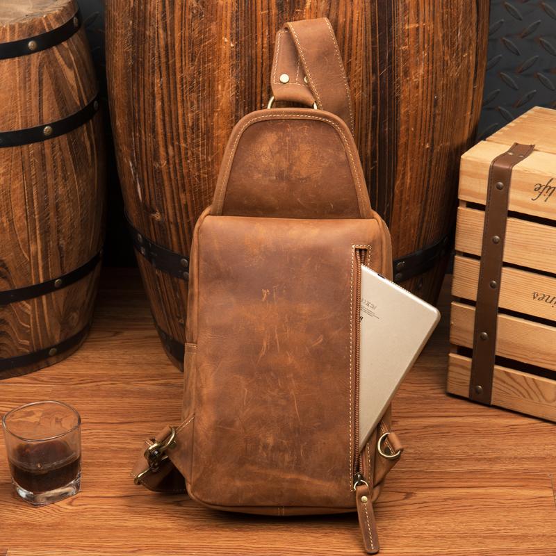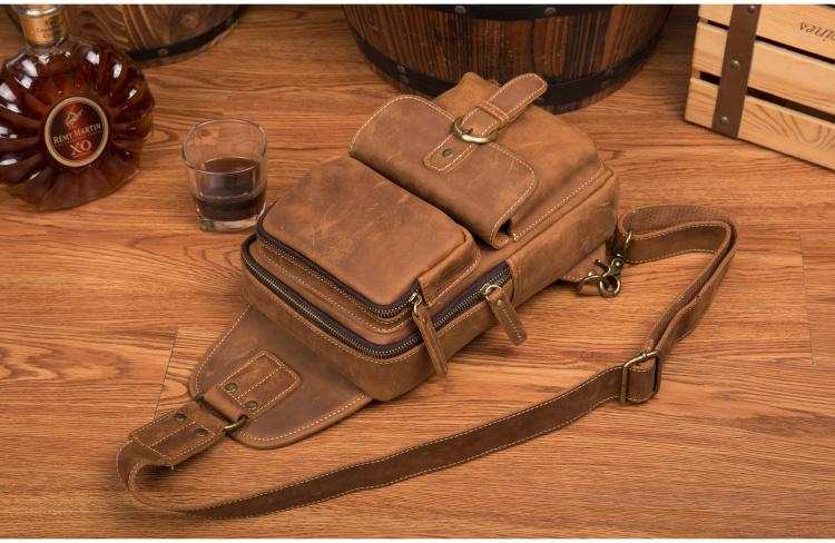 Leather Mens Cool Sling Bag Crossbody Bag Chest Bag for men