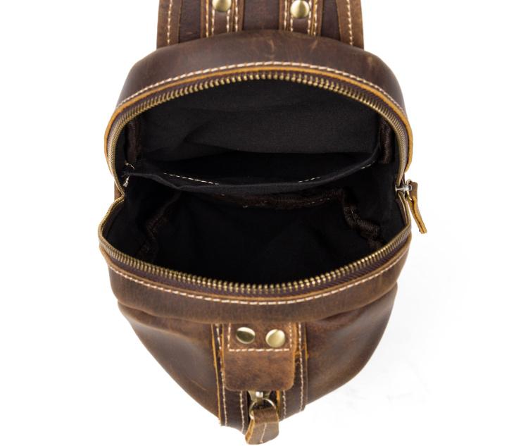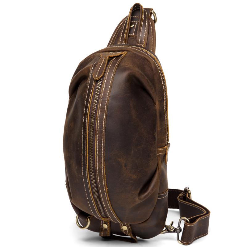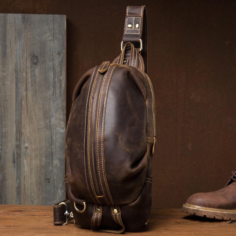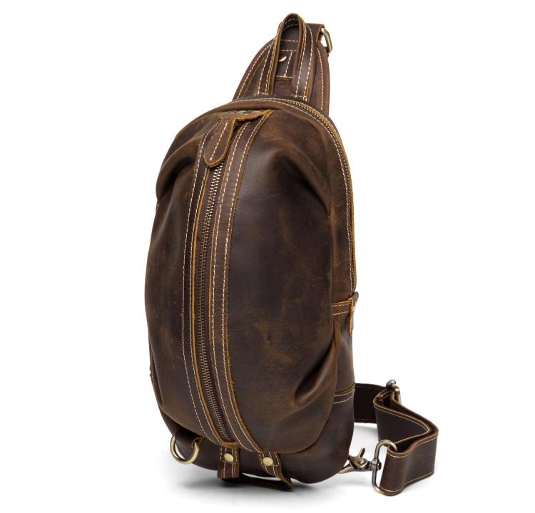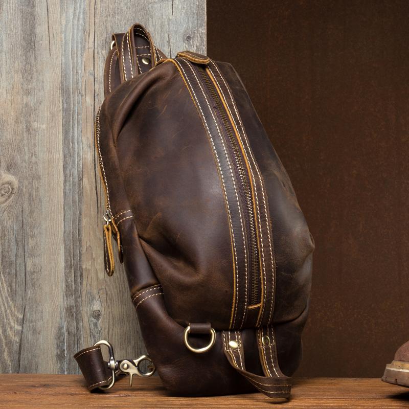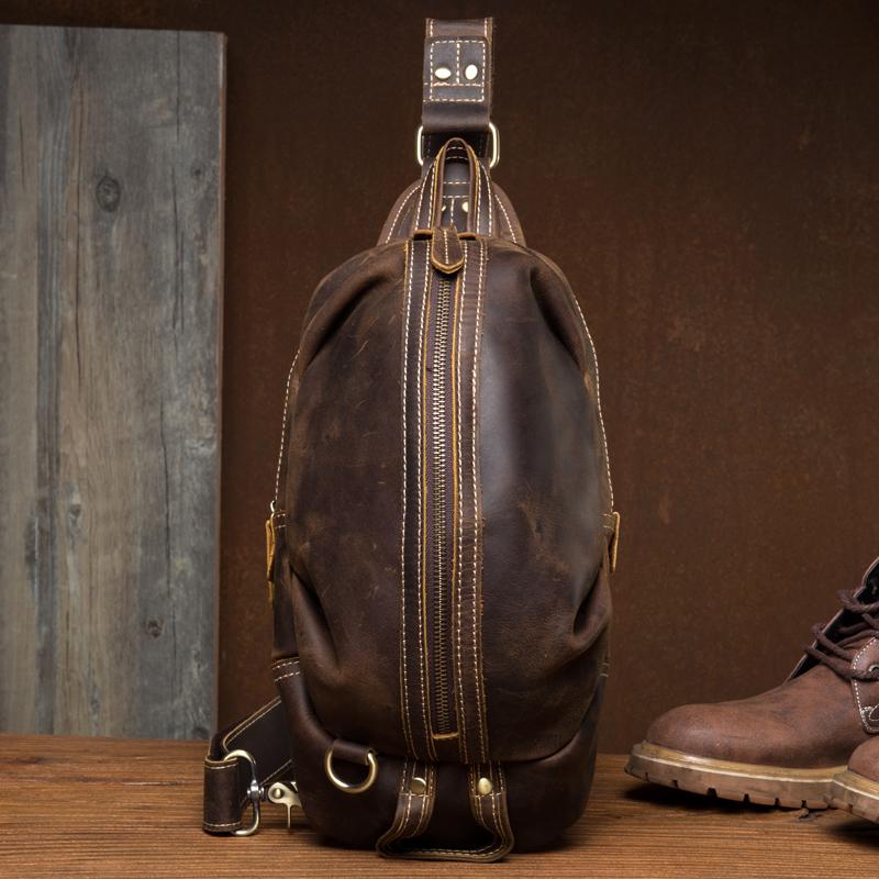 Style: Leather Mens Cool Sling Bag Crossbody Bag Chest Bag for men
