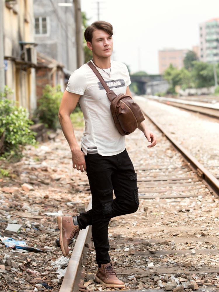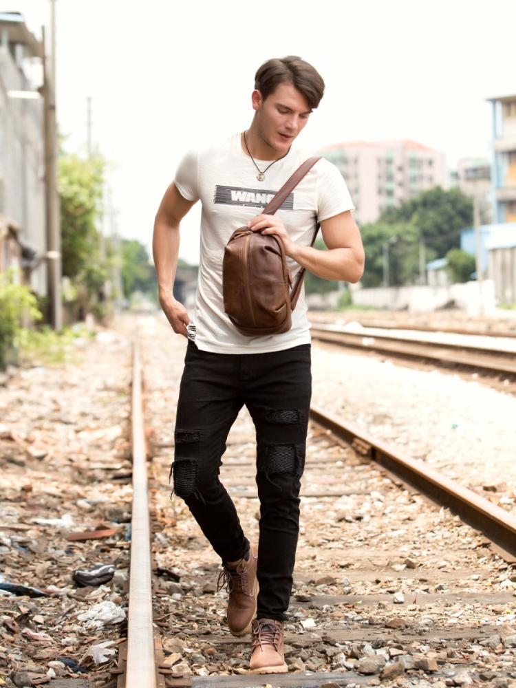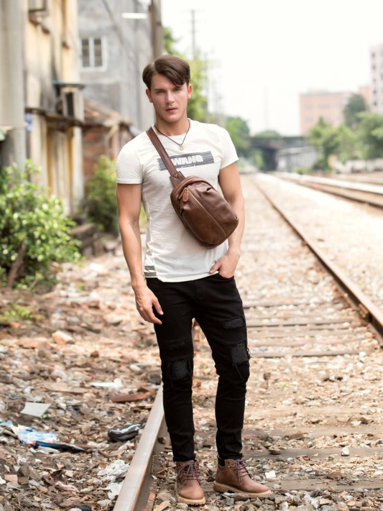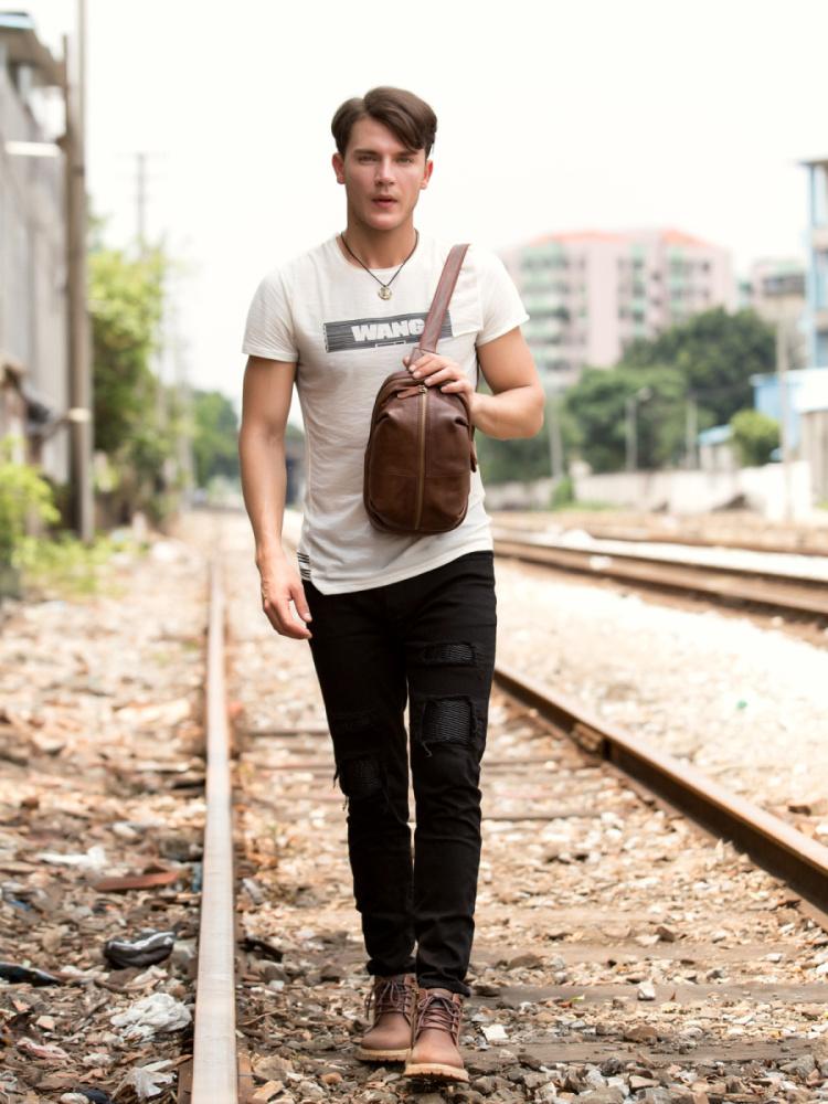 Design: Leather Mens Cool Sling Bag Crossbody Bag Chest Bag for men