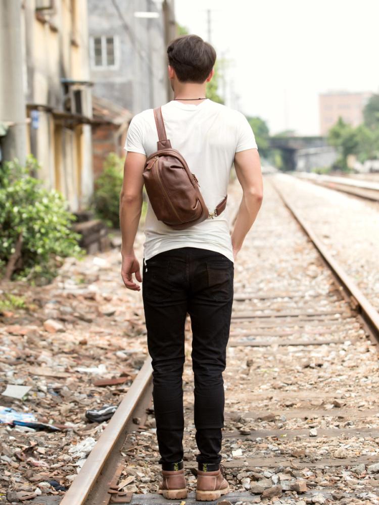 Leather Mens Cool Sling Bag Crossbody Bag Chest Bag for men