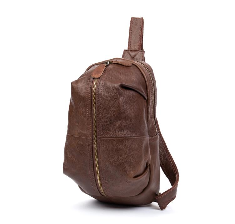 Style: Leather Mens Cool Sling Bag Crossbody Bag Chest Bag for men