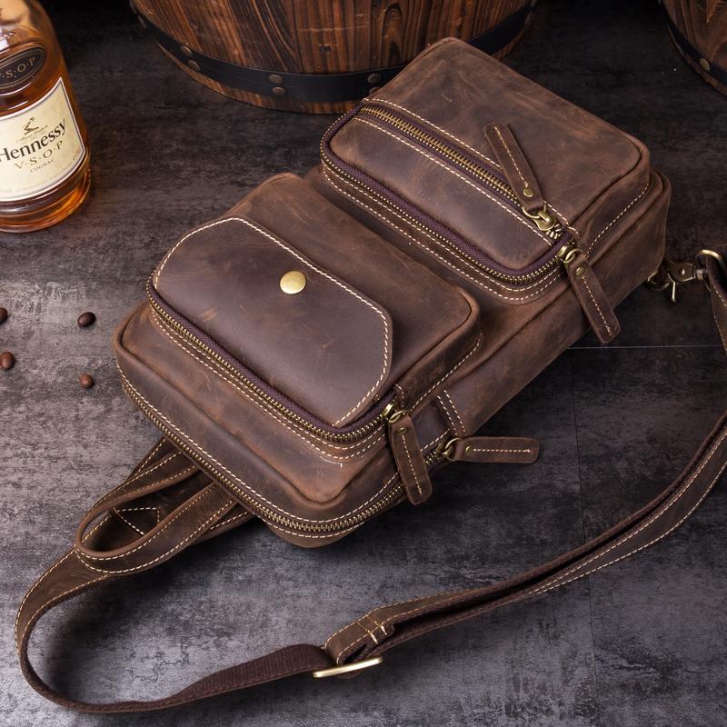 Design: Leather Mens Cool Sling Bag Crossbody Bag Chest Bag for men