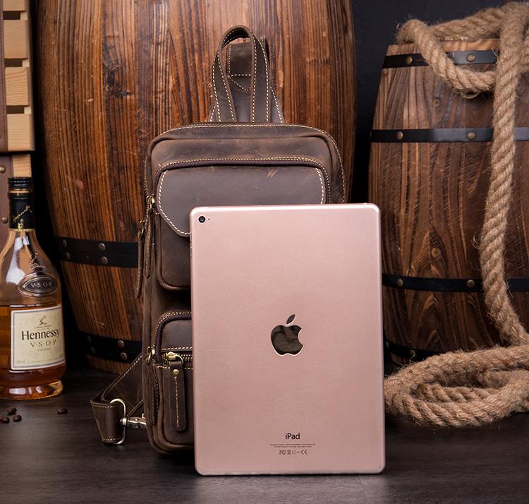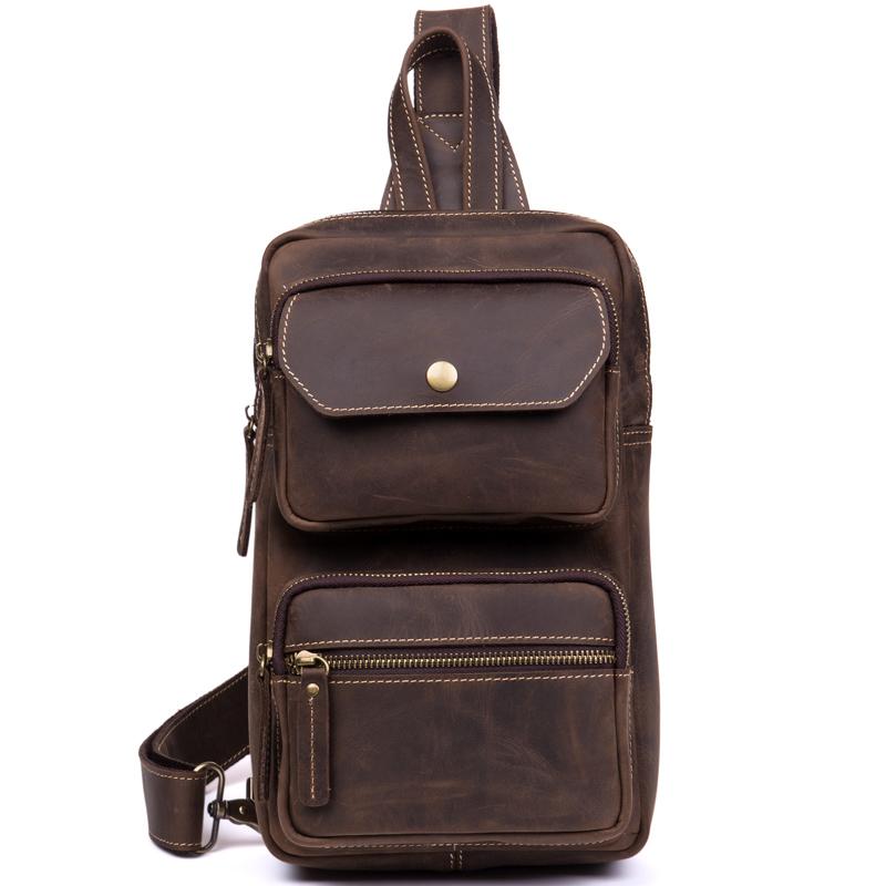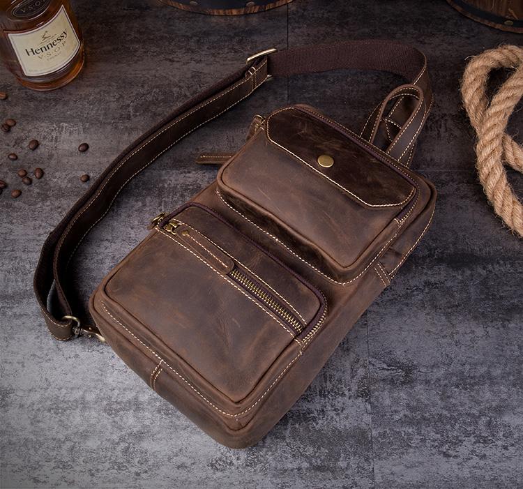 Style: Leather Mens Cool Sling Bag Crossbody Bag Chest Bag for men