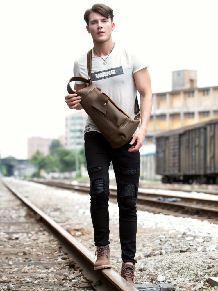 Design: Leather Mens Cool Sling Bag Crossbody Bag Chest Bag for men