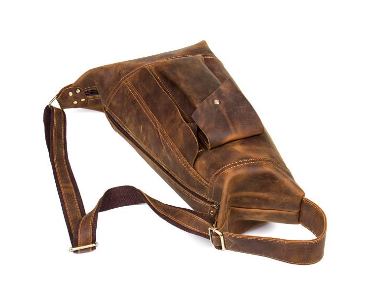 Style: Leather Mens Cool Sling Bag Crossbody Bag Chest Bag for men