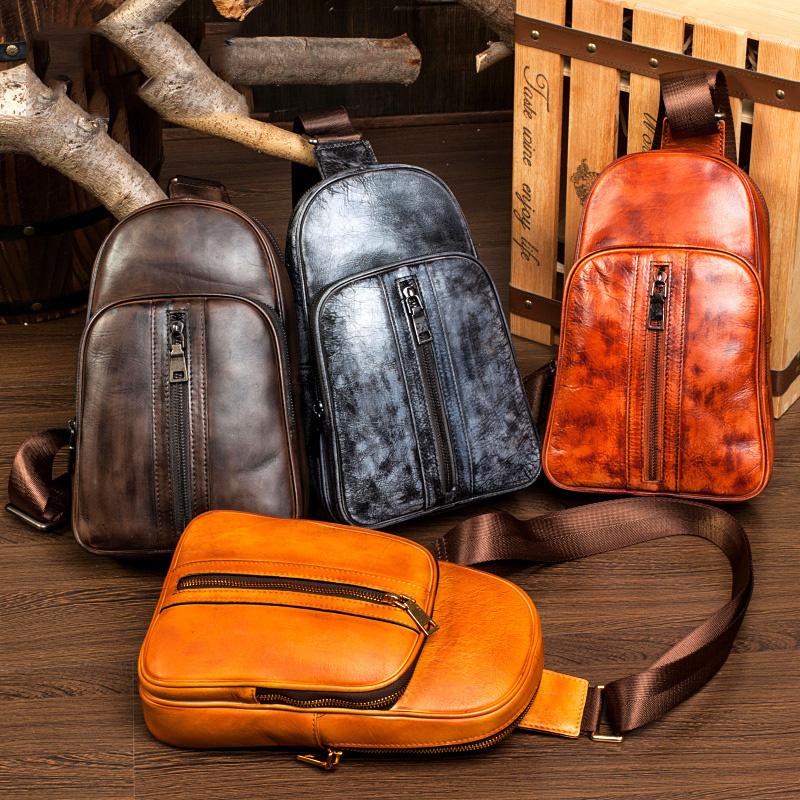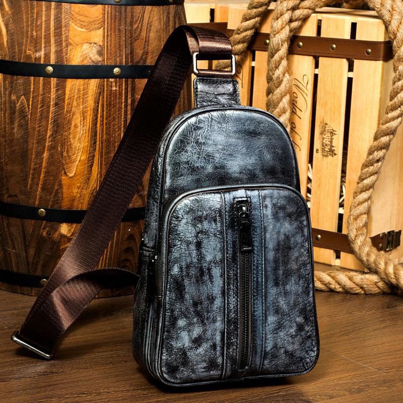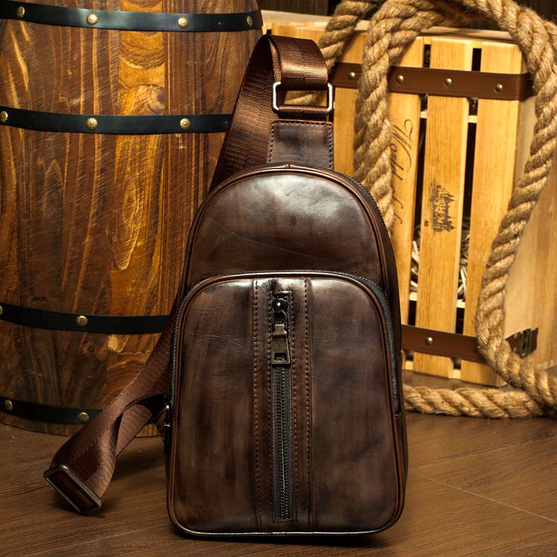 Design: Leather Mens Cool Sling Bag Crossbody Bag Chest Bag for men