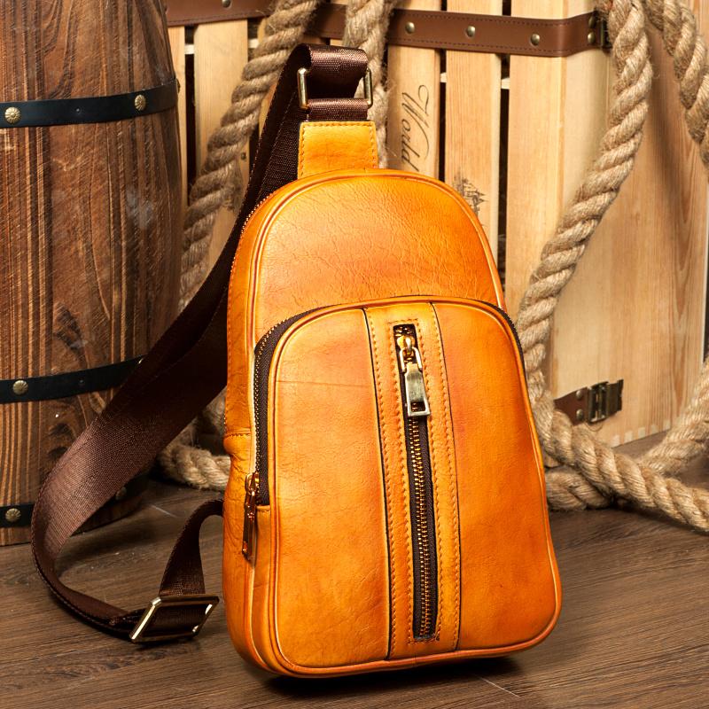 Style: Leather Mens Cool Sling Bag Crossbody Bag Chest Bag for men