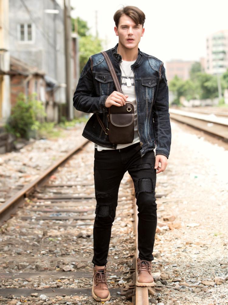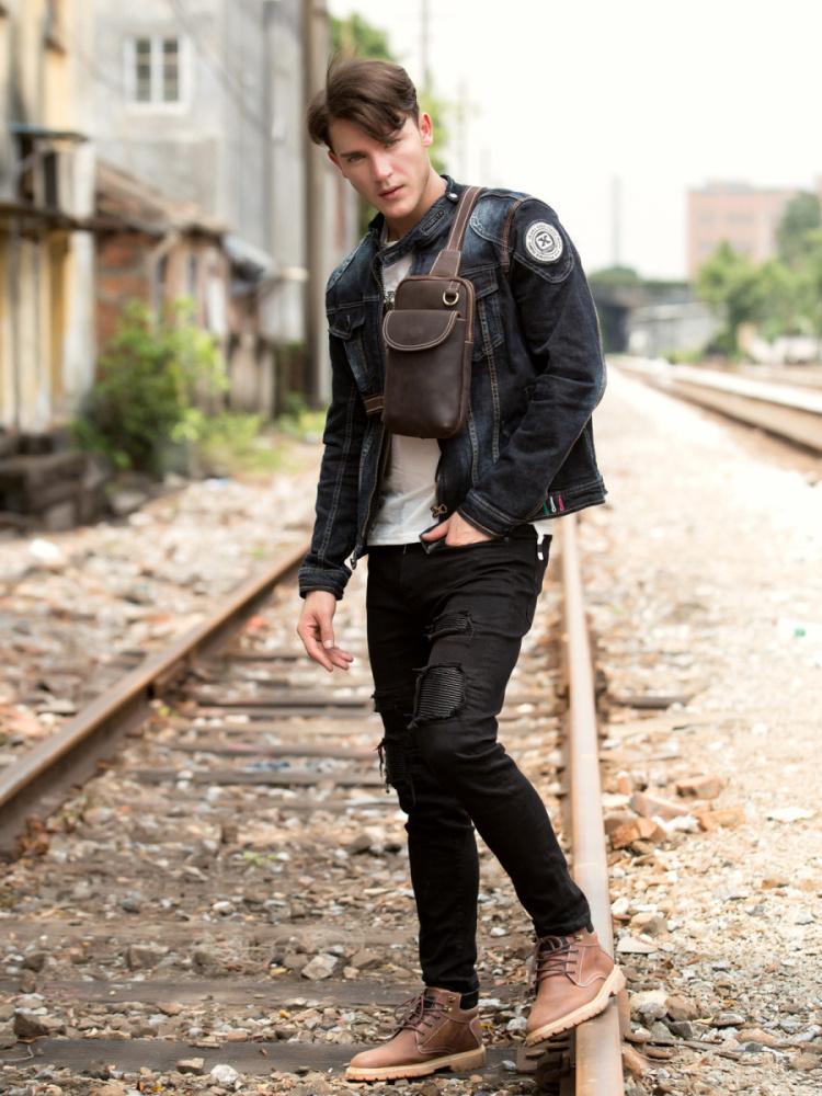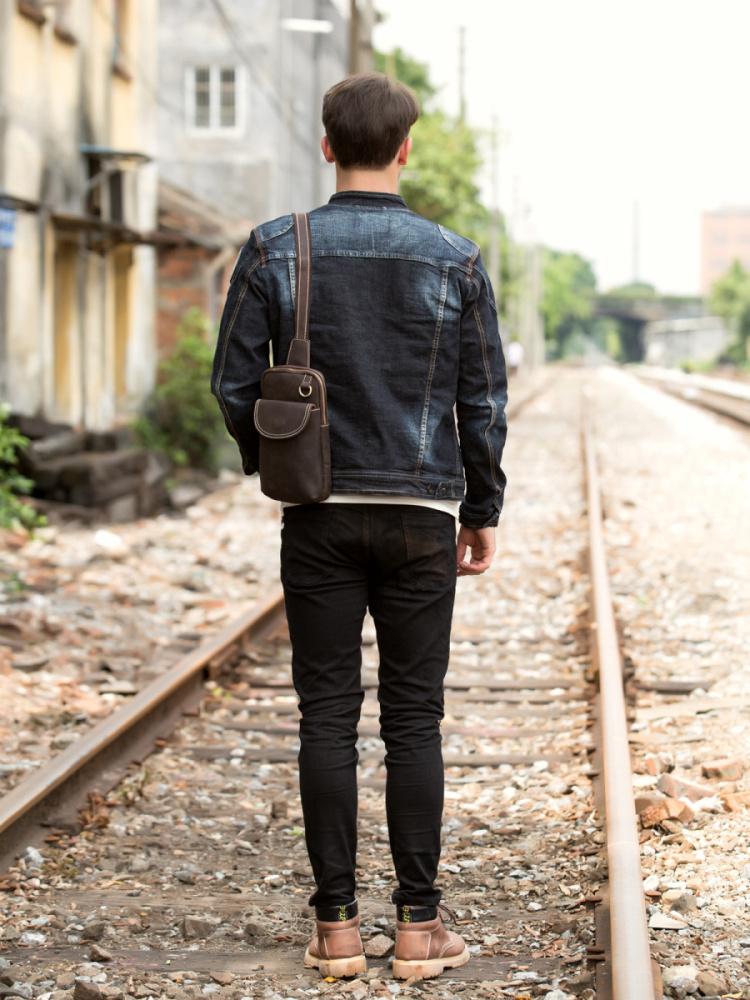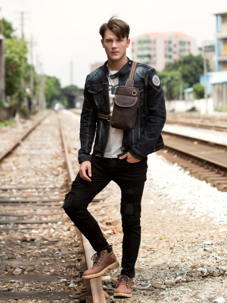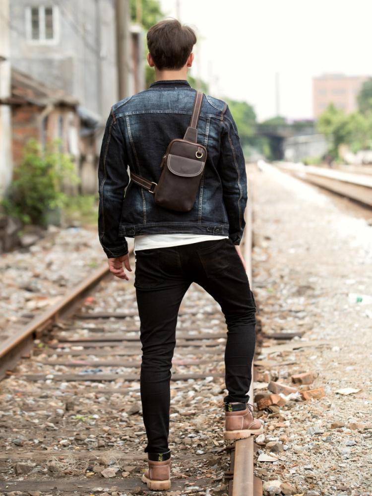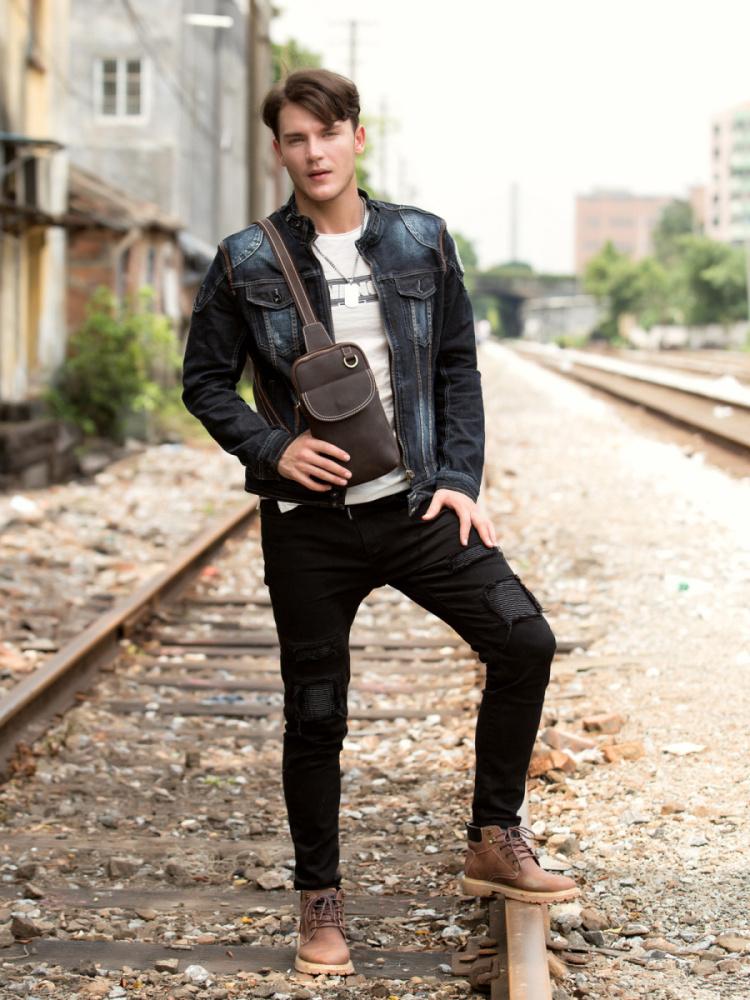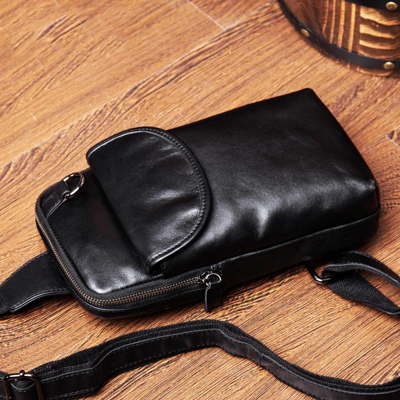 Design: Leather Mens Cool Sling Bag Crossbody Bag Chest Bag for men