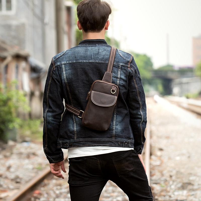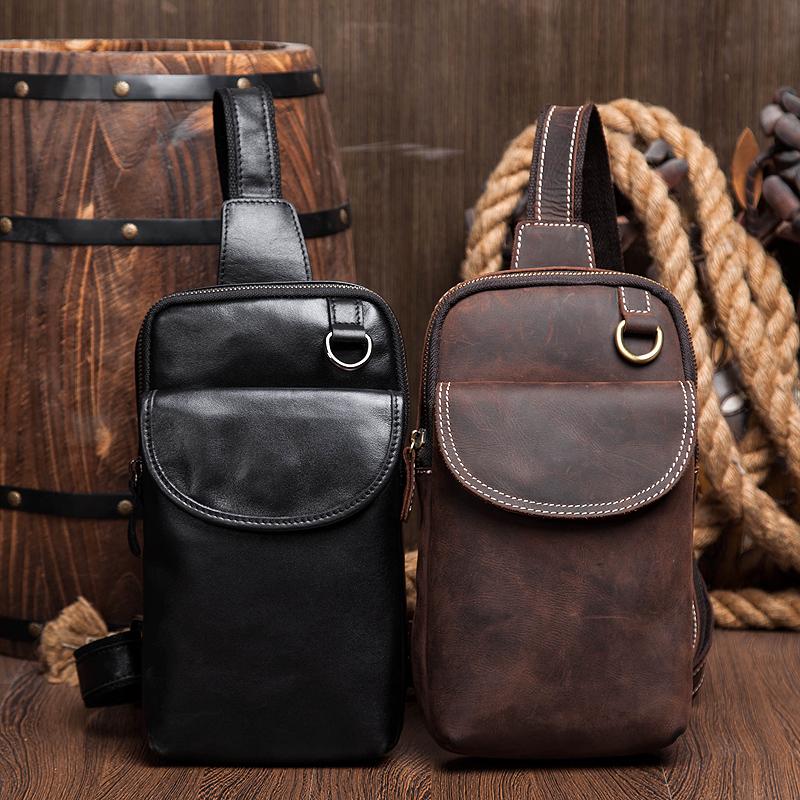 Leather Mens Cool Sling Bag Crossbody Bag Chest Bag for men