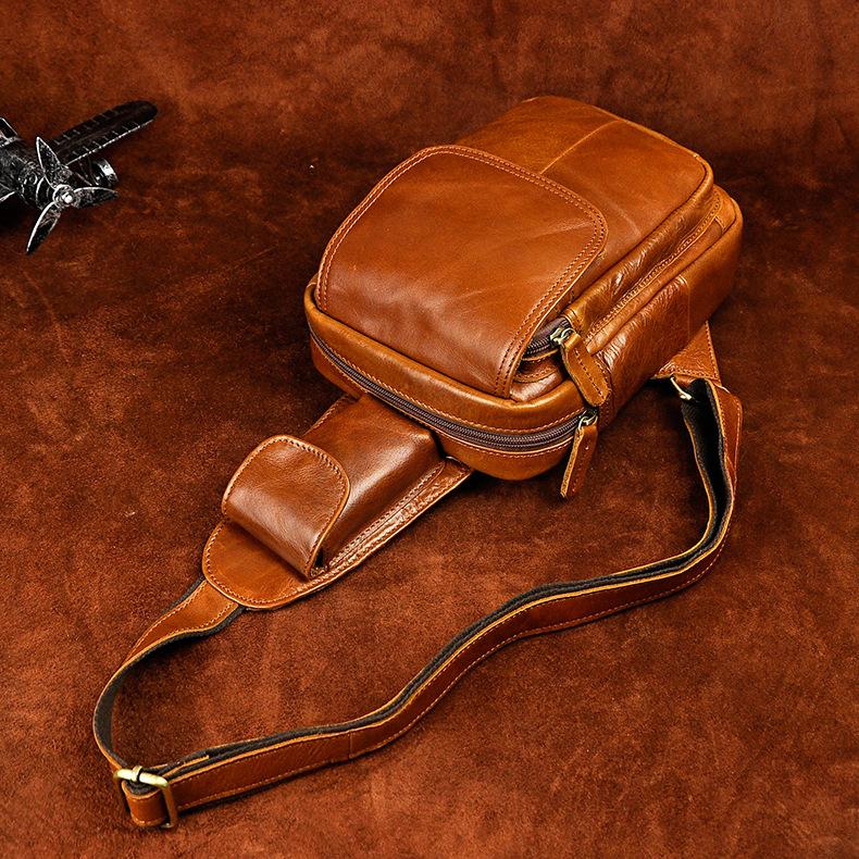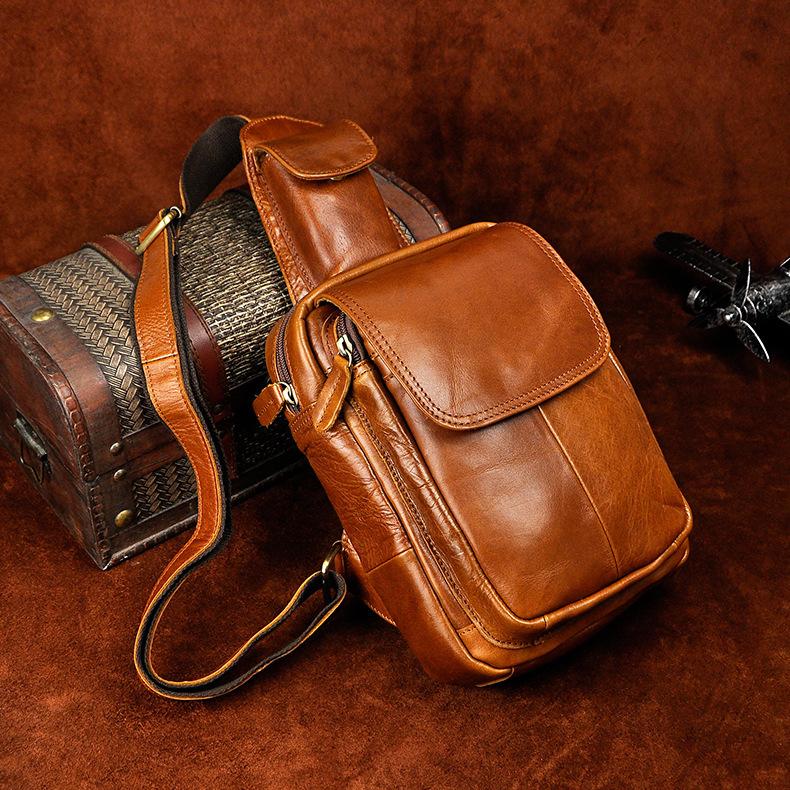 Design: Leather Mens Cool Sling Bag Crossbody Bag Chest Bag for men