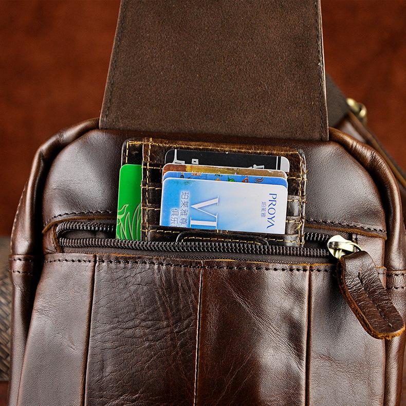 Style: Leather Mens Cool Sling Bag Crossbody Bag Chest Bag for men