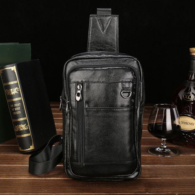 Design: Leather Mens Cool Sling Bag Crossbody Bag Chest Bag for men