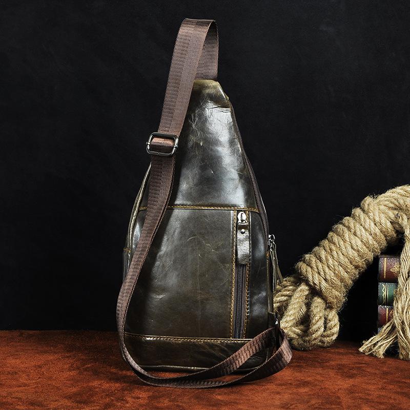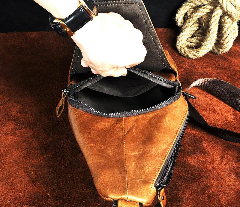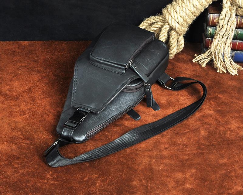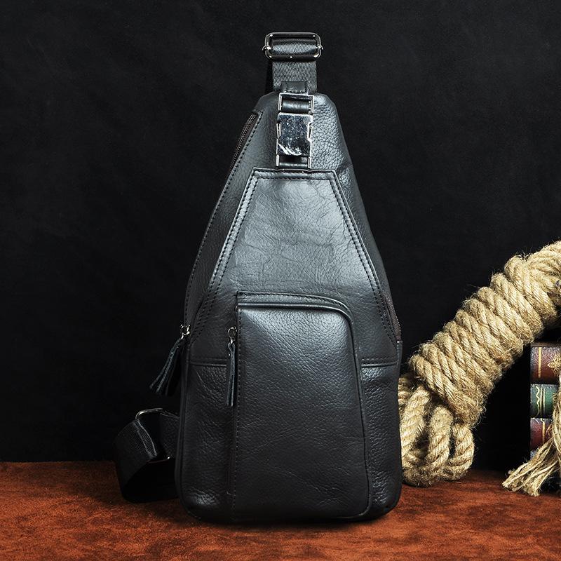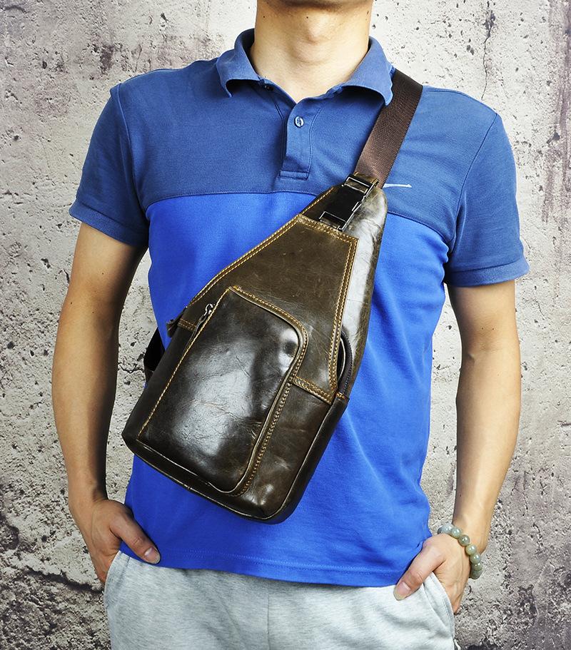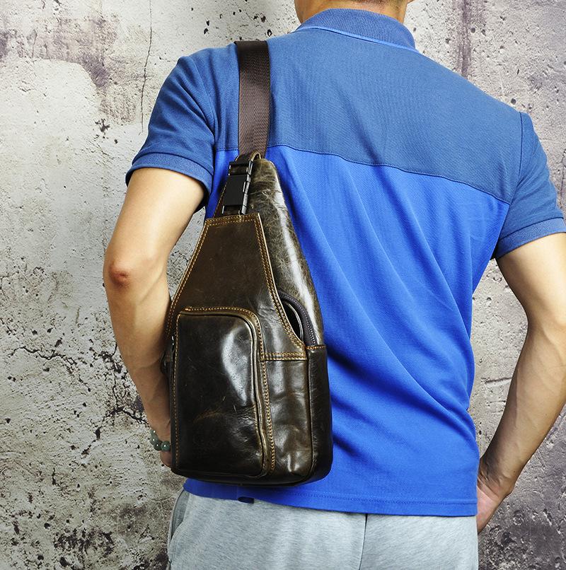 Style: Leather Mens Cool Sling Bag Crossbody Bag Chest Bag for men