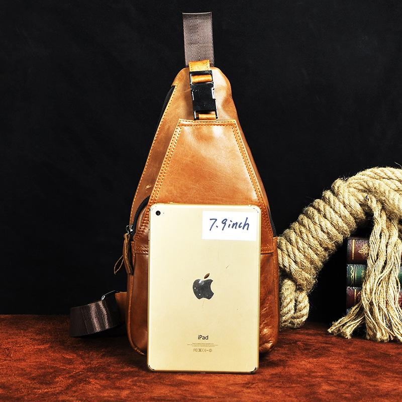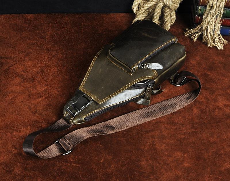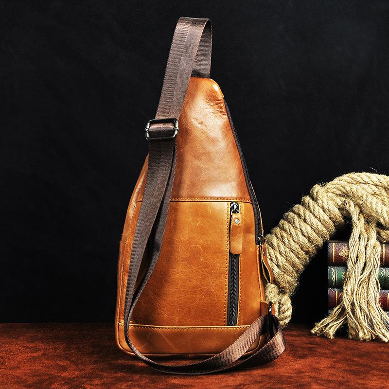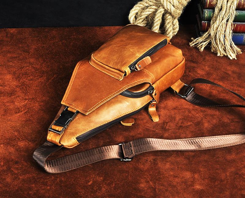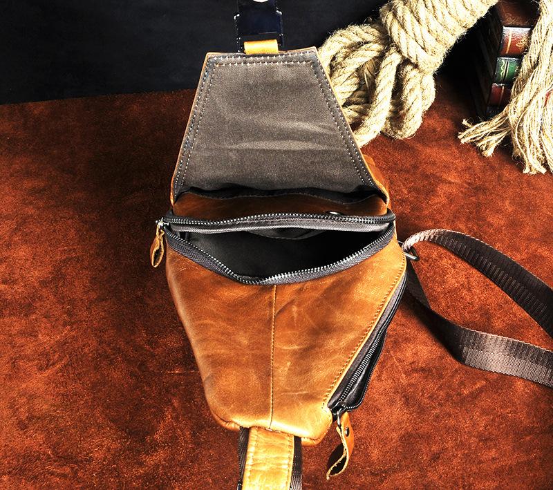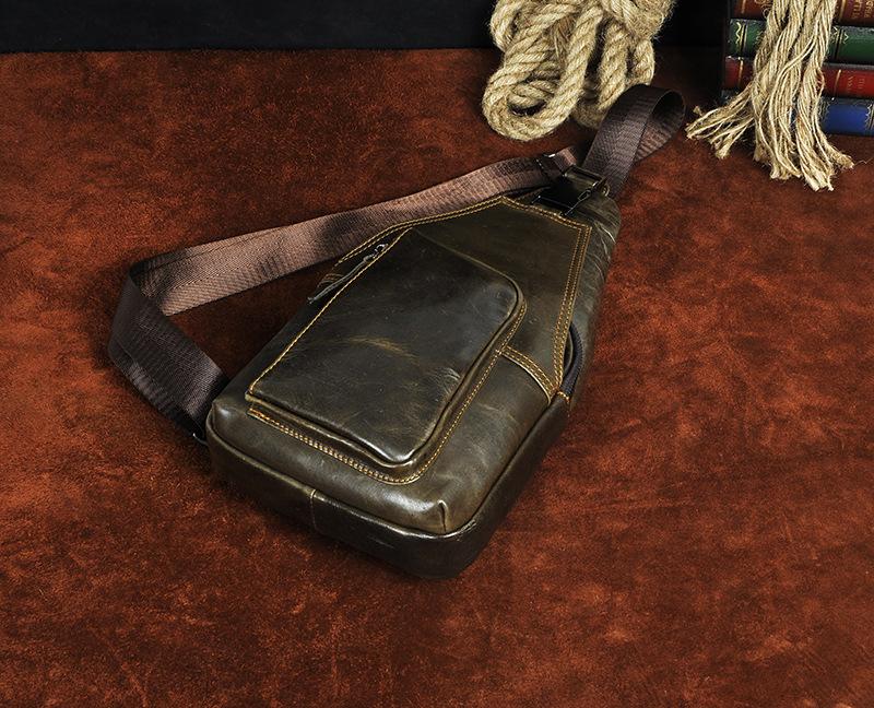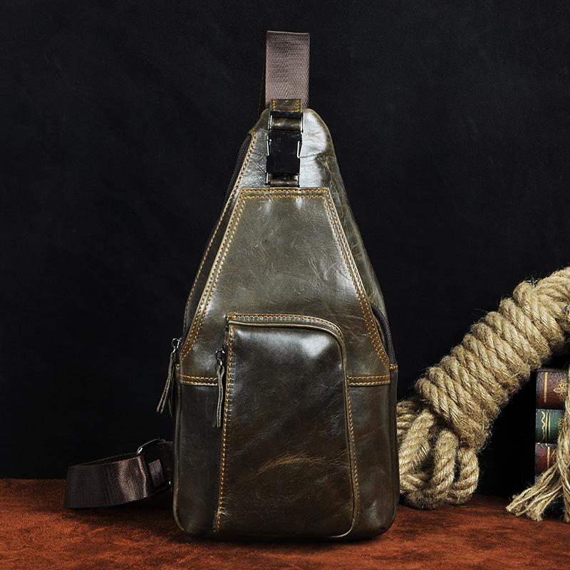 Style: Leather Mens Cool Sling Bag Crossbody Bag Chest Bag for men