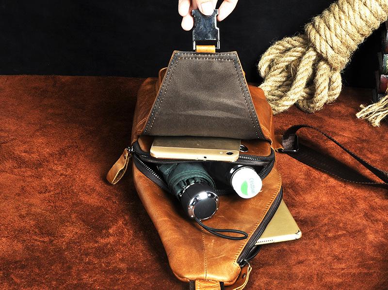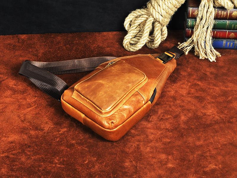 Design: Leather Mens Cool Sling Bag Crossbody Bag Chest Bag for men