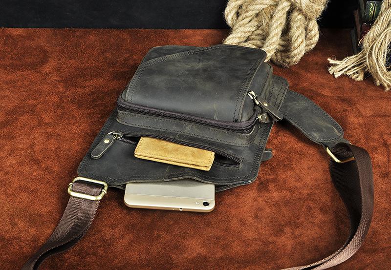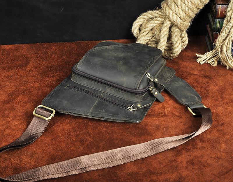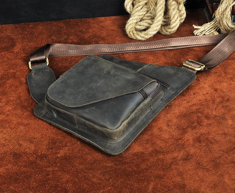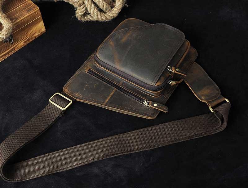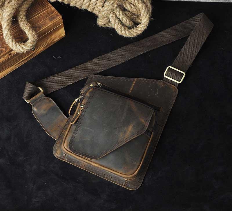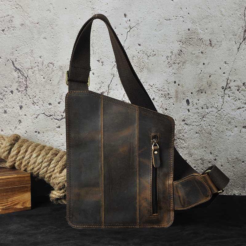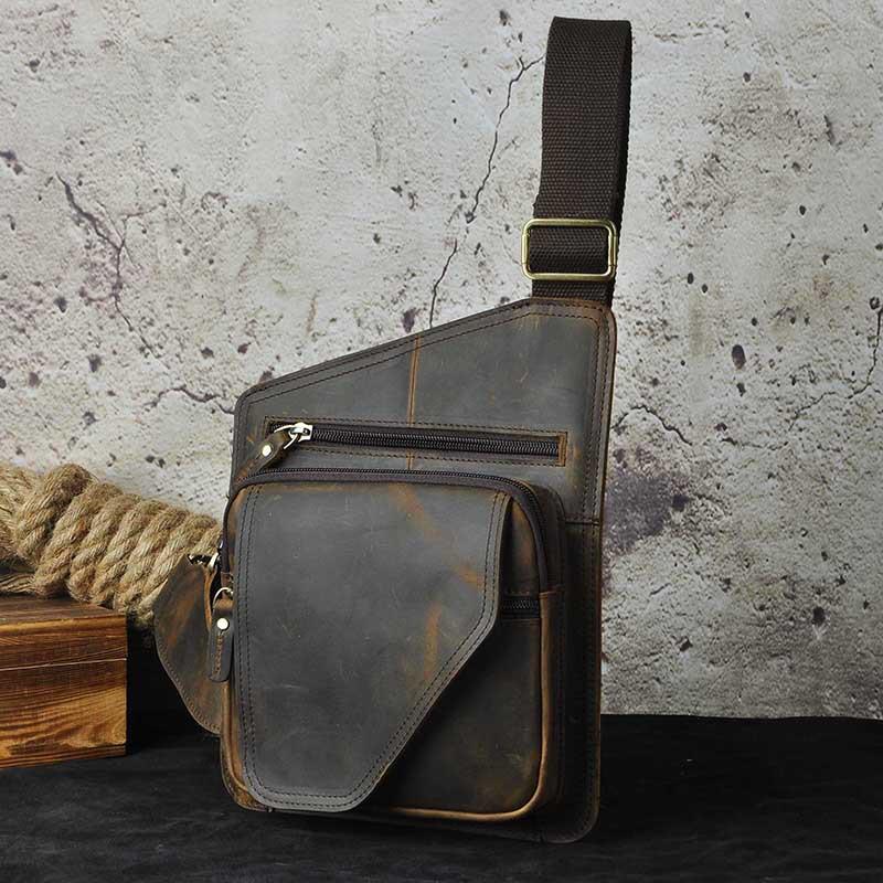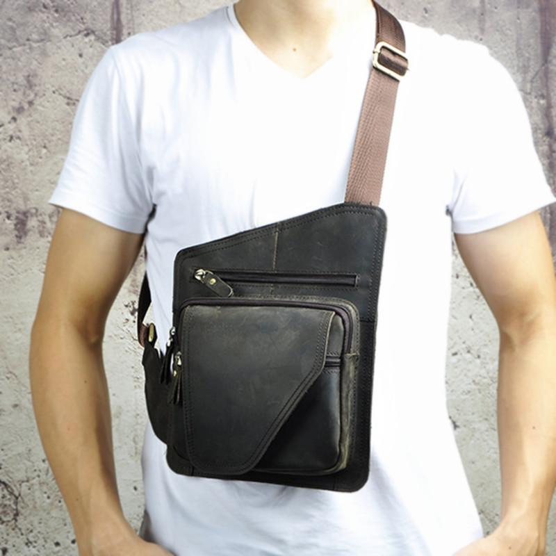 Style: Leather Mens Cool Sling Bag Crossbody Bag Chest Bag for men