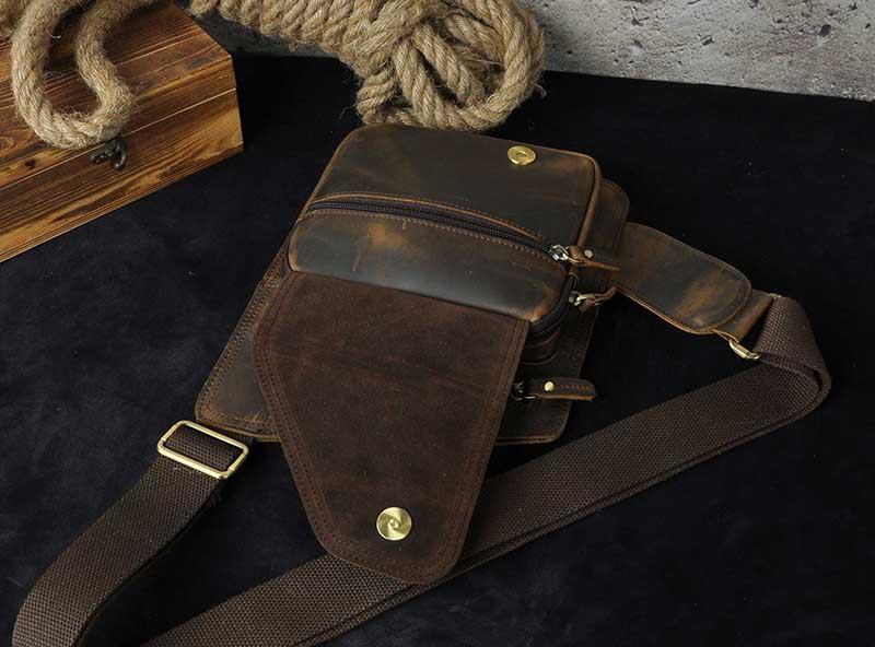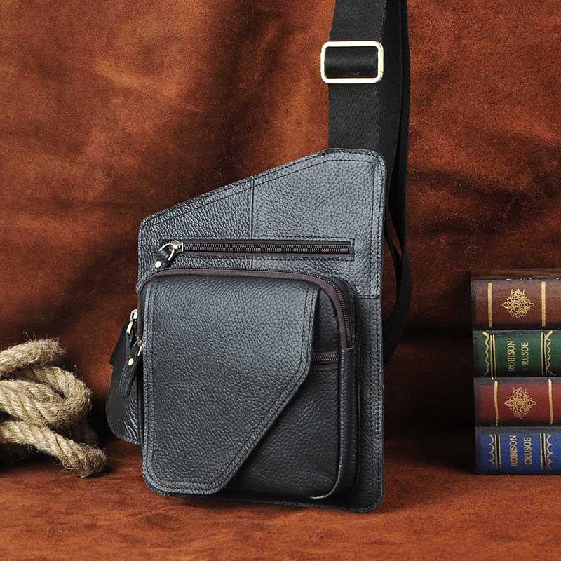 Design: Leather Mens Cool Sling Bag Crossbody Bag Chest Bag for men
