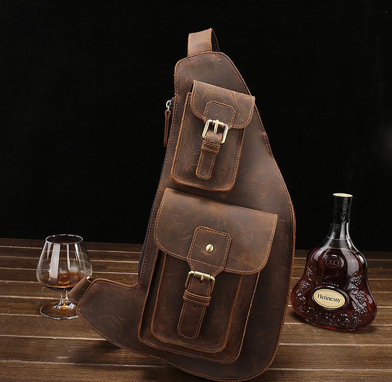 Leather Mens Cool Sling Bag Crossbody Bag Chest Bag for men